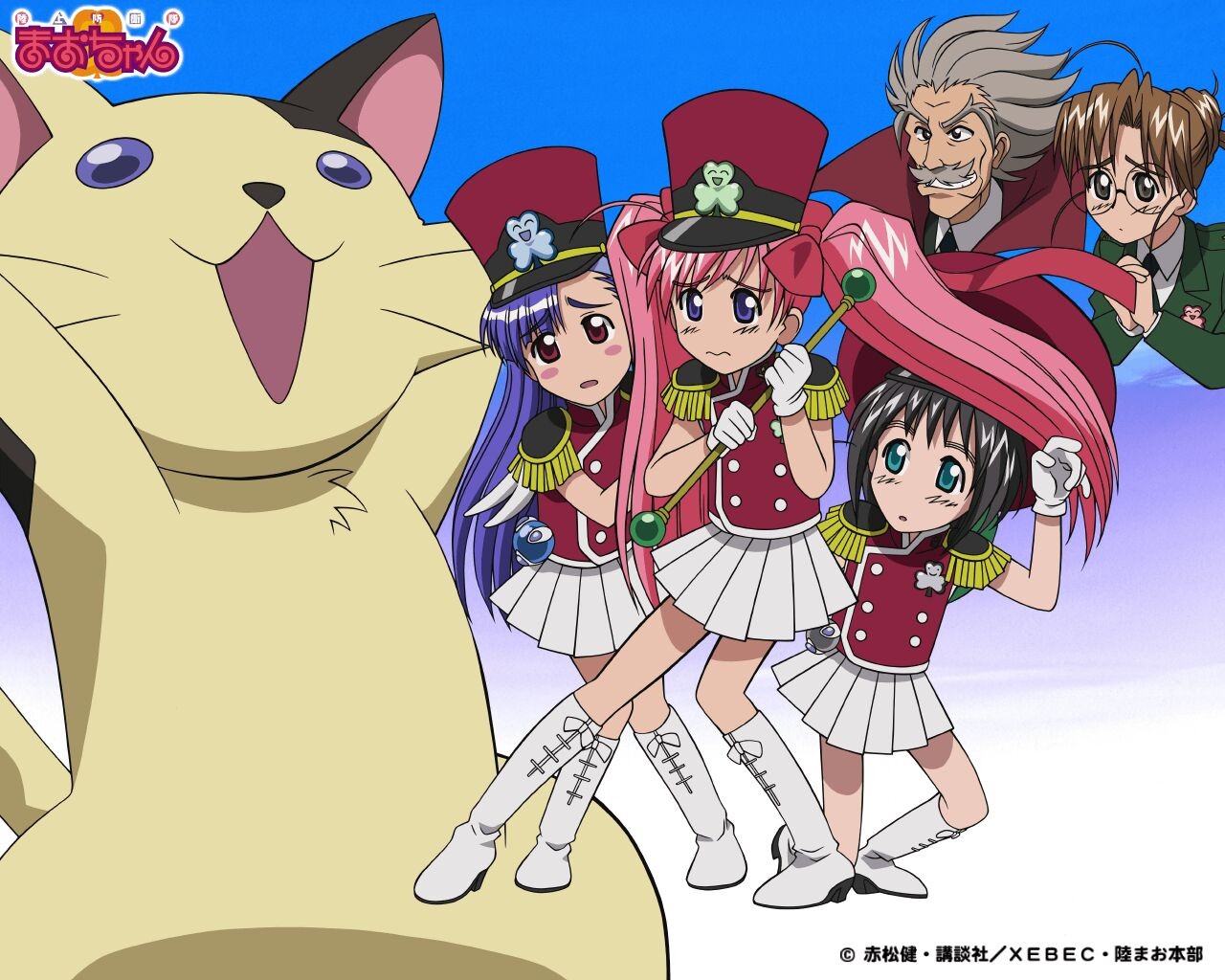 Animals Anime glasses hats red eyes skirts pink hair smiling