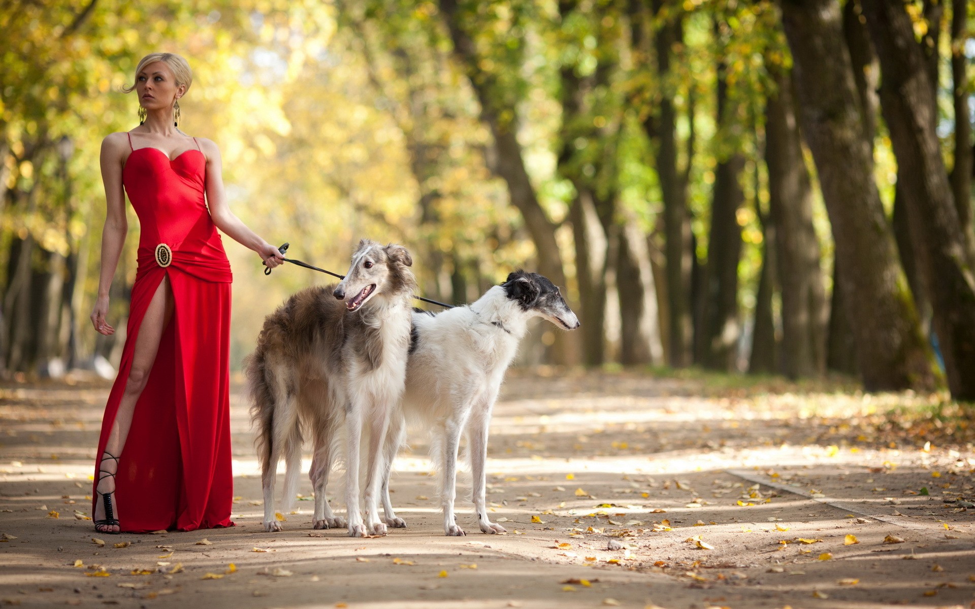 Animals woman Dogs red dress legs blondes barsoi