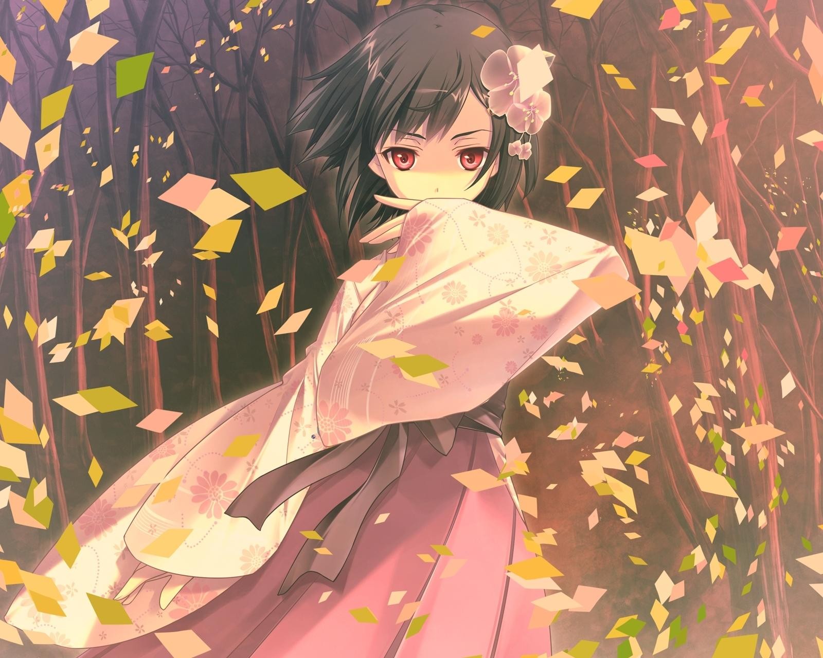 Sunset Trees autumn woman Ribbons brunettes short hair seifuku