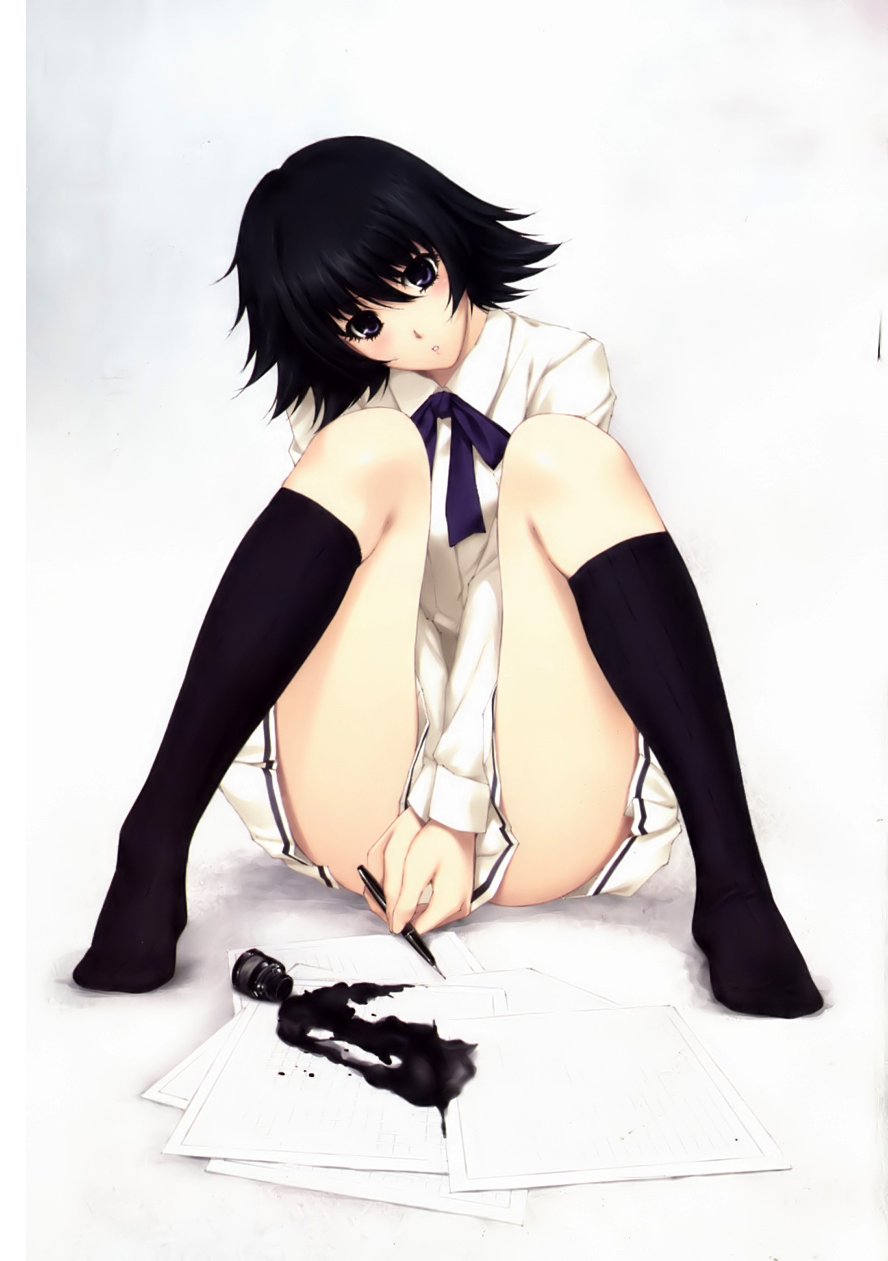 Smiling anime girls knee