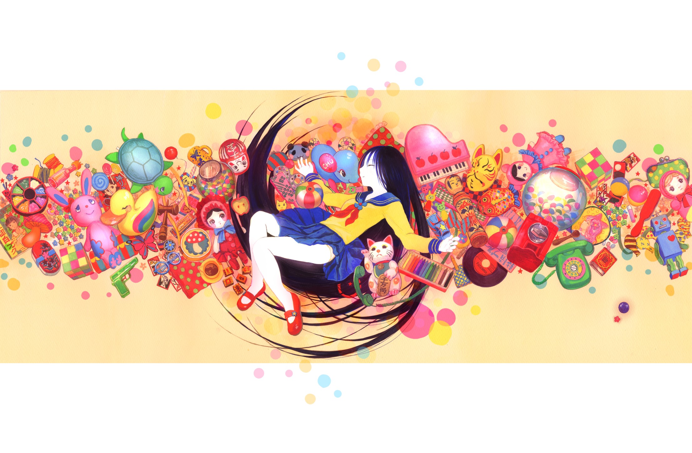 Balls weapons Guns Books coffee food chocolate Ducks dolls