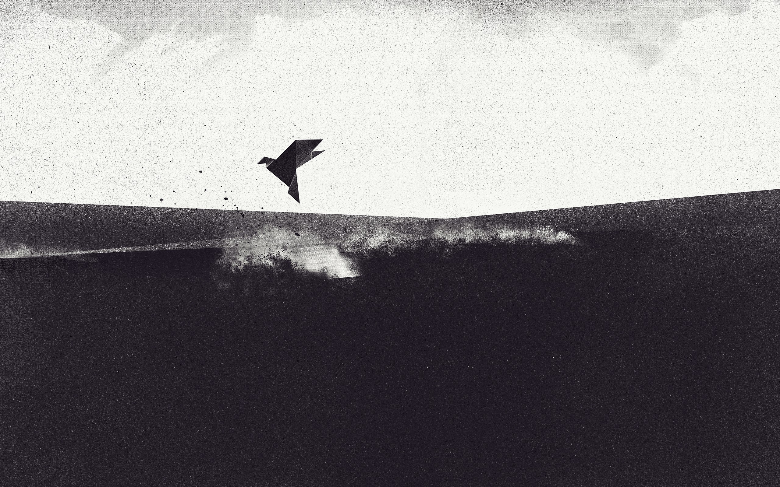 Birds abstract retro artwork grayscale Dan Matutina