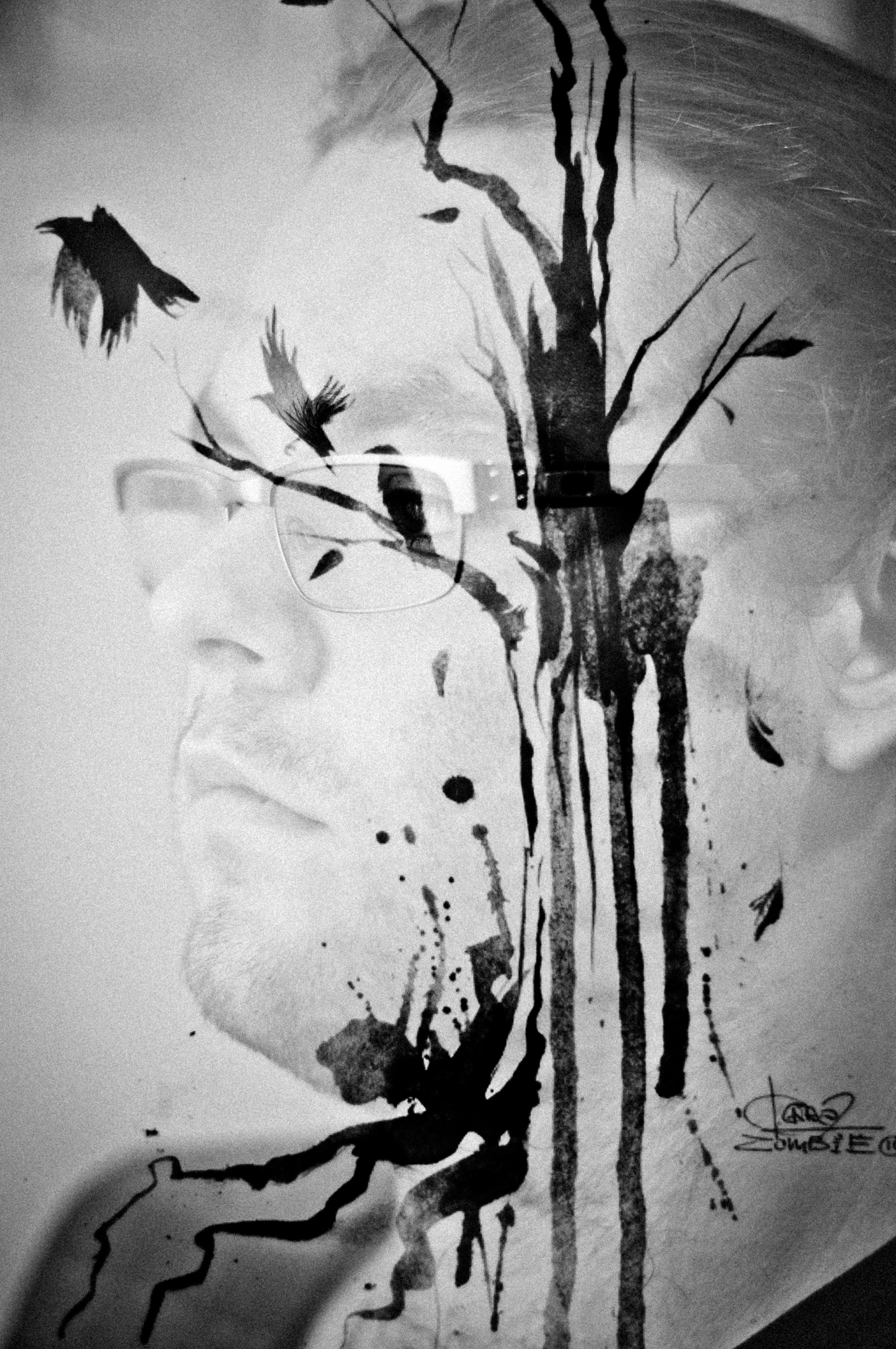 Black and white Men paint Birds glasses three portraits double