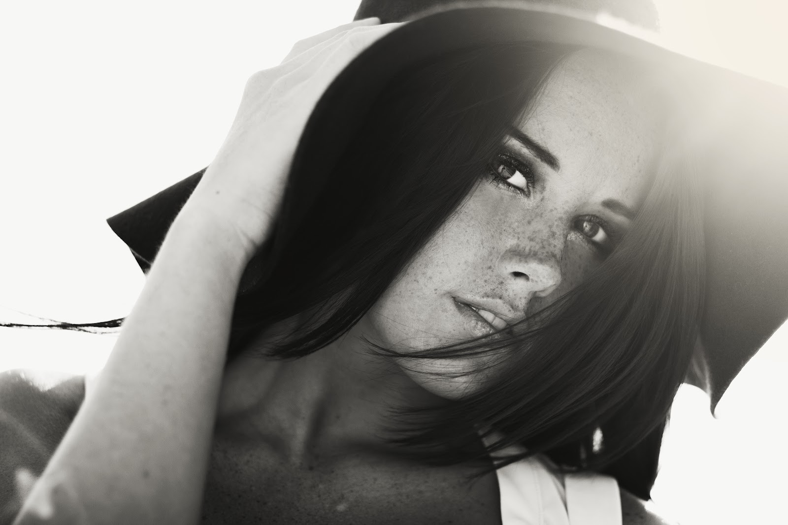 Black and white woman monochrome fashion green eyes brunettes