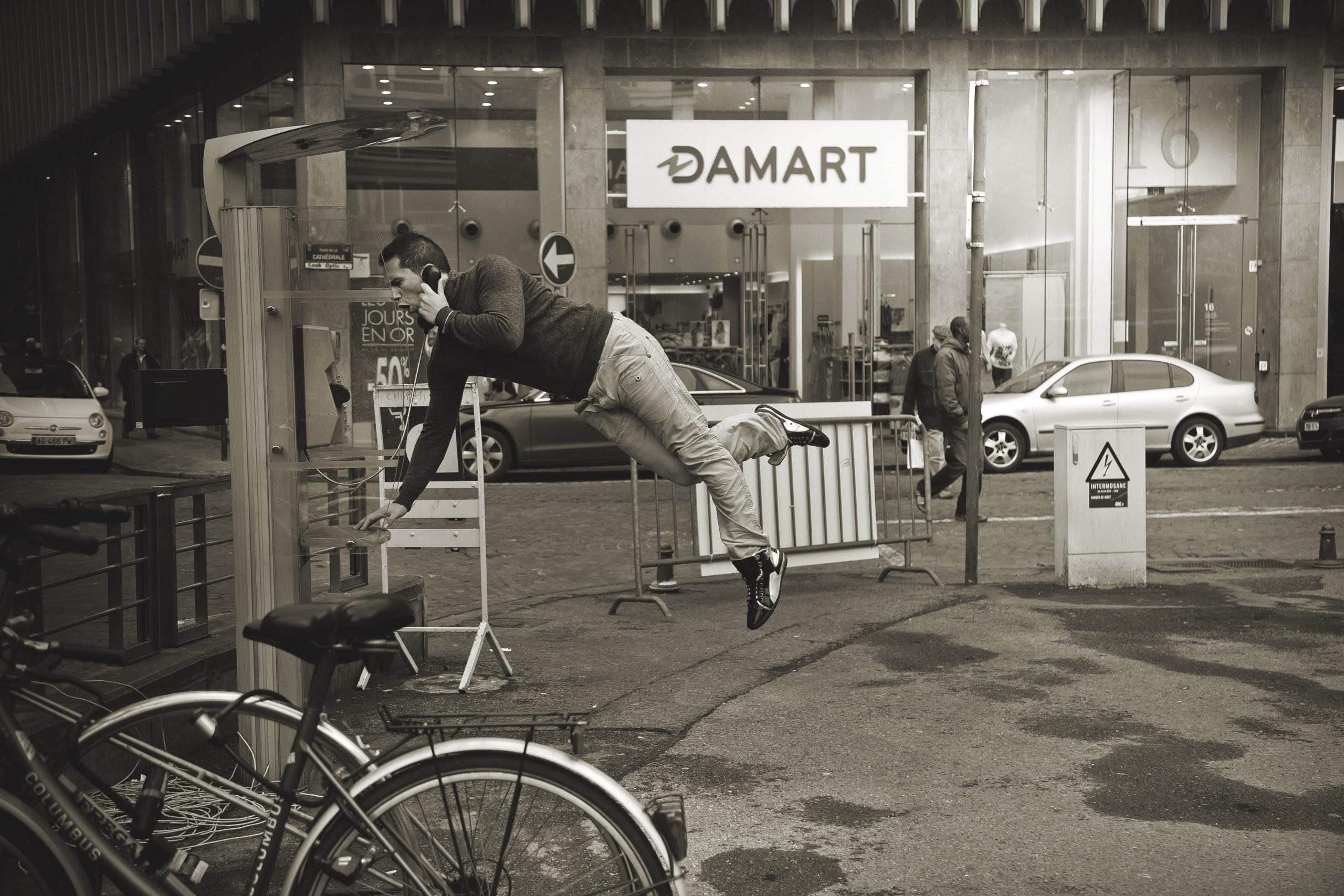 Black black and white cars monochrome streets phones public