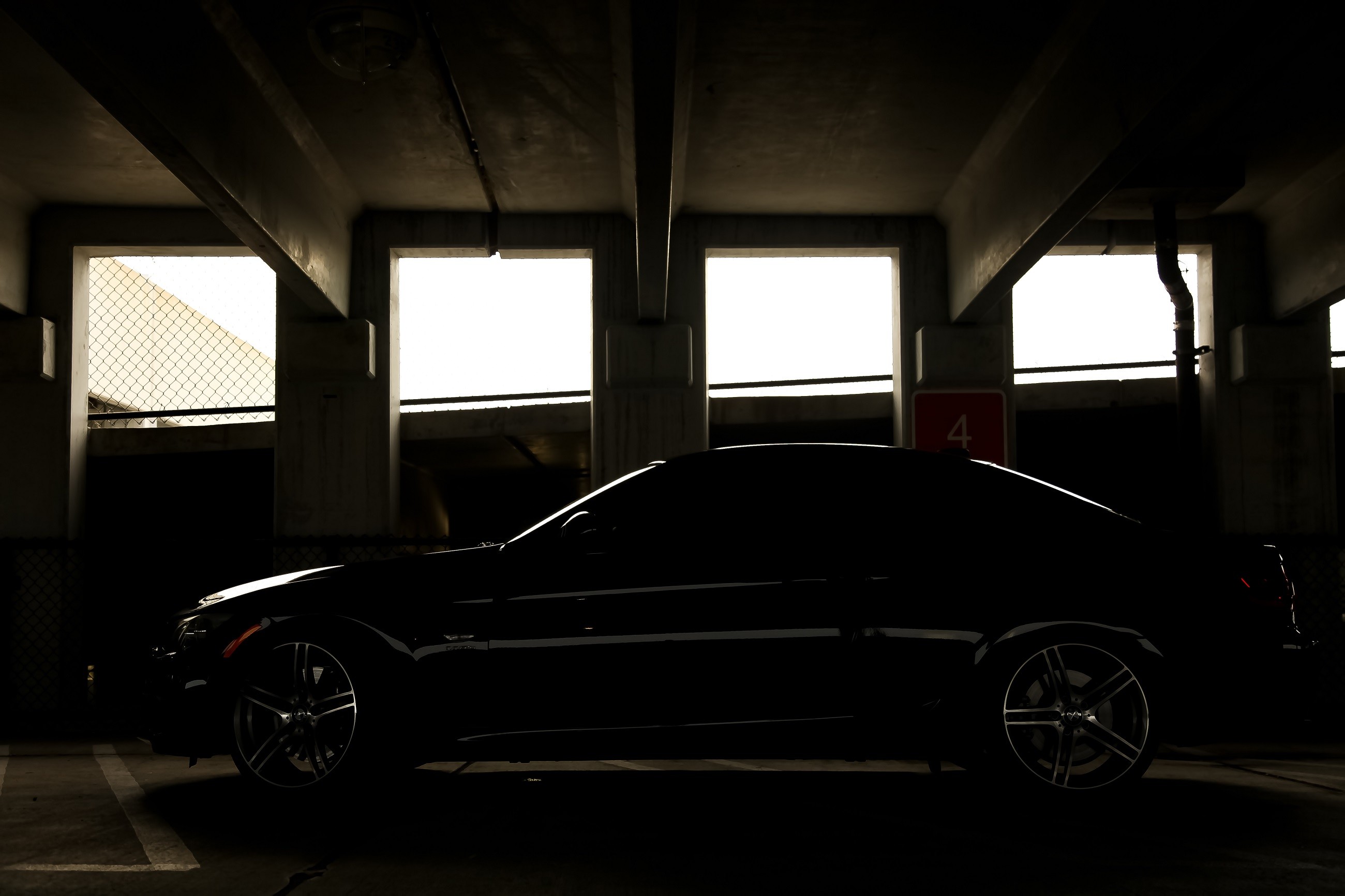 Black cars BMW shadows BMW 3 Series Parking garage