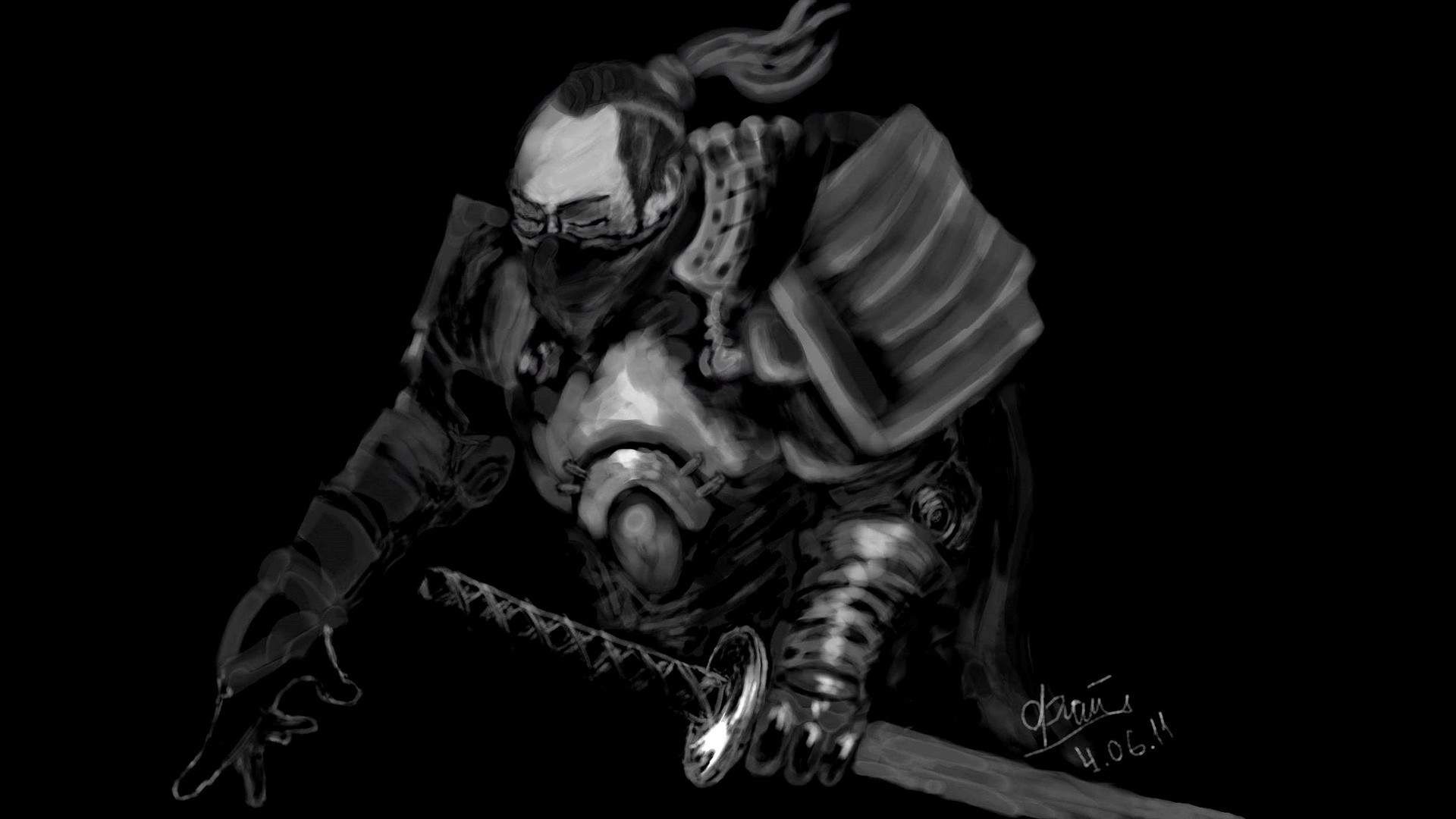 Black samurai drowing