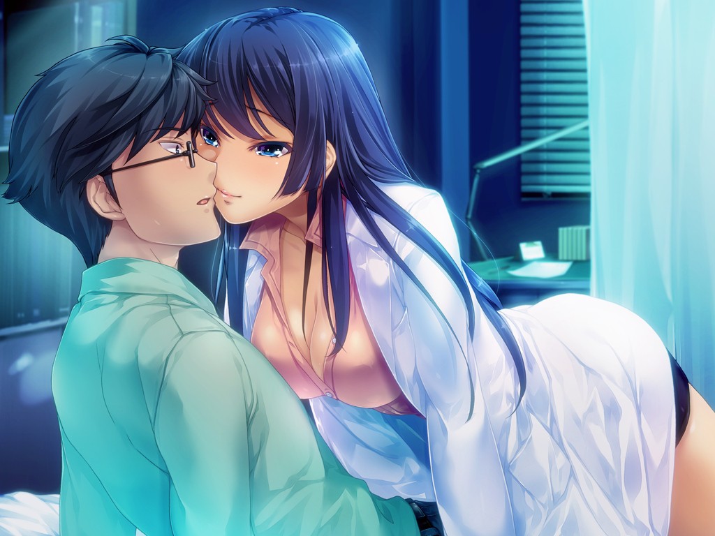 Blue hair anime girls blue eyes game cg koi desu Shindan no