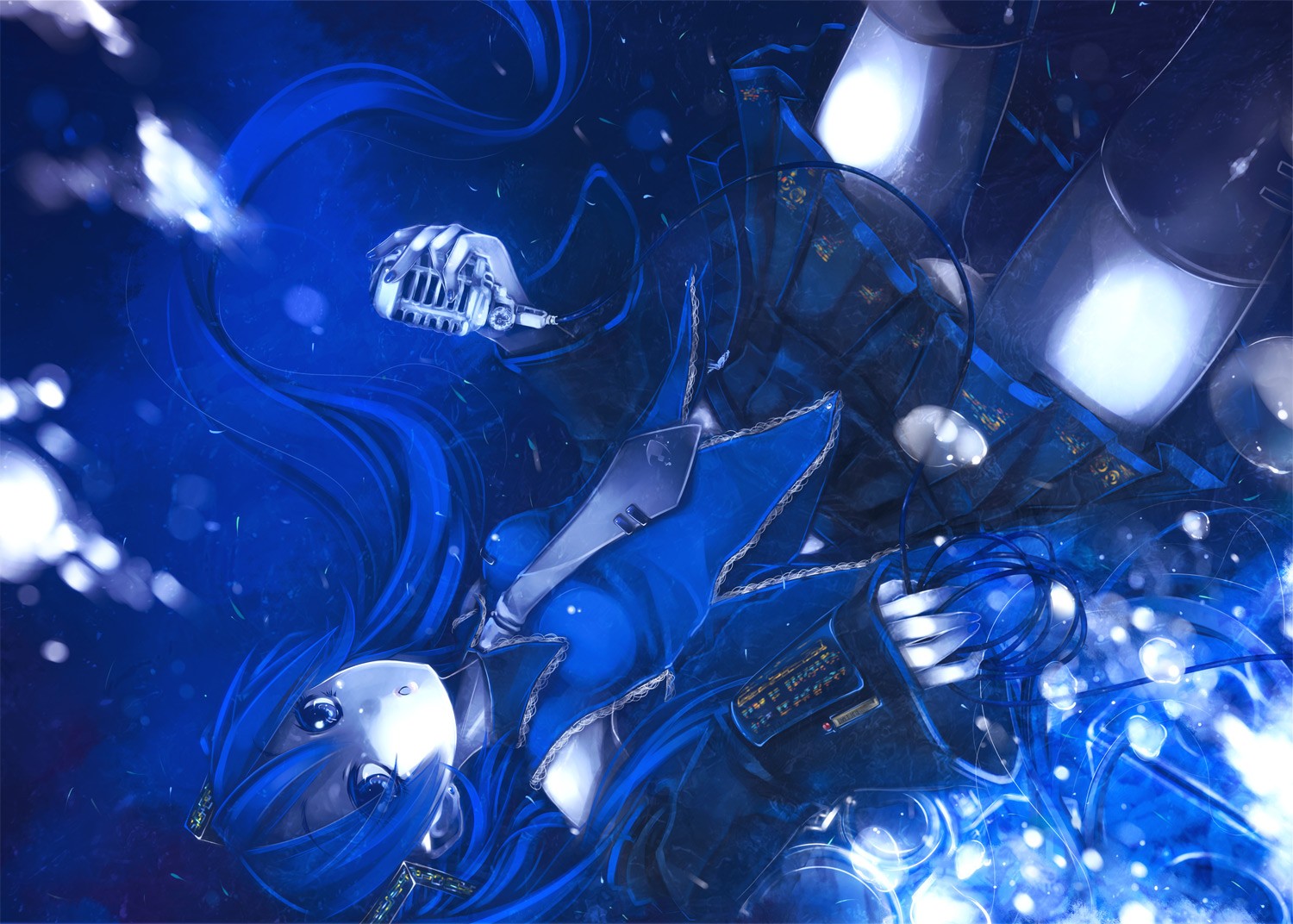 Blue tie microphones skirts filter blue hair long hair blue
