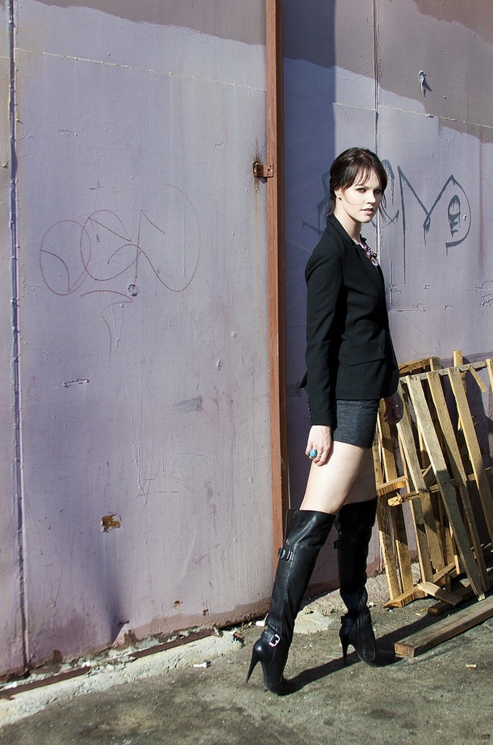 Brunettes legs woman black