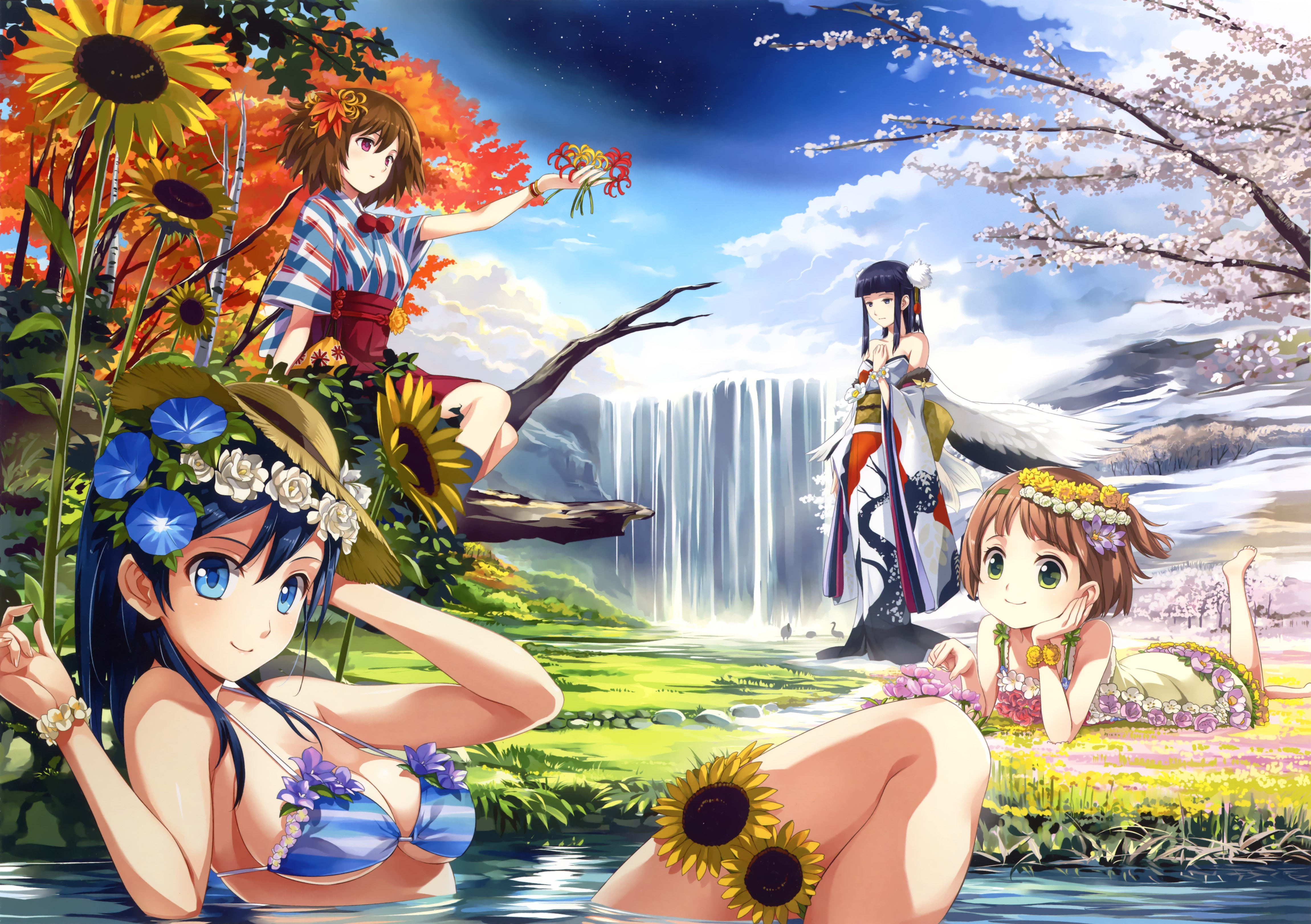 Flowers Anime sakura anime girls scans swimsuits Ekusa Takahito