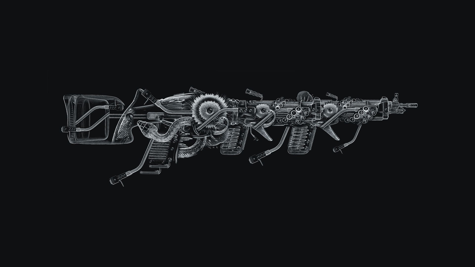 Flowers black Guns snakes turntables tentacles ammunition Photo
