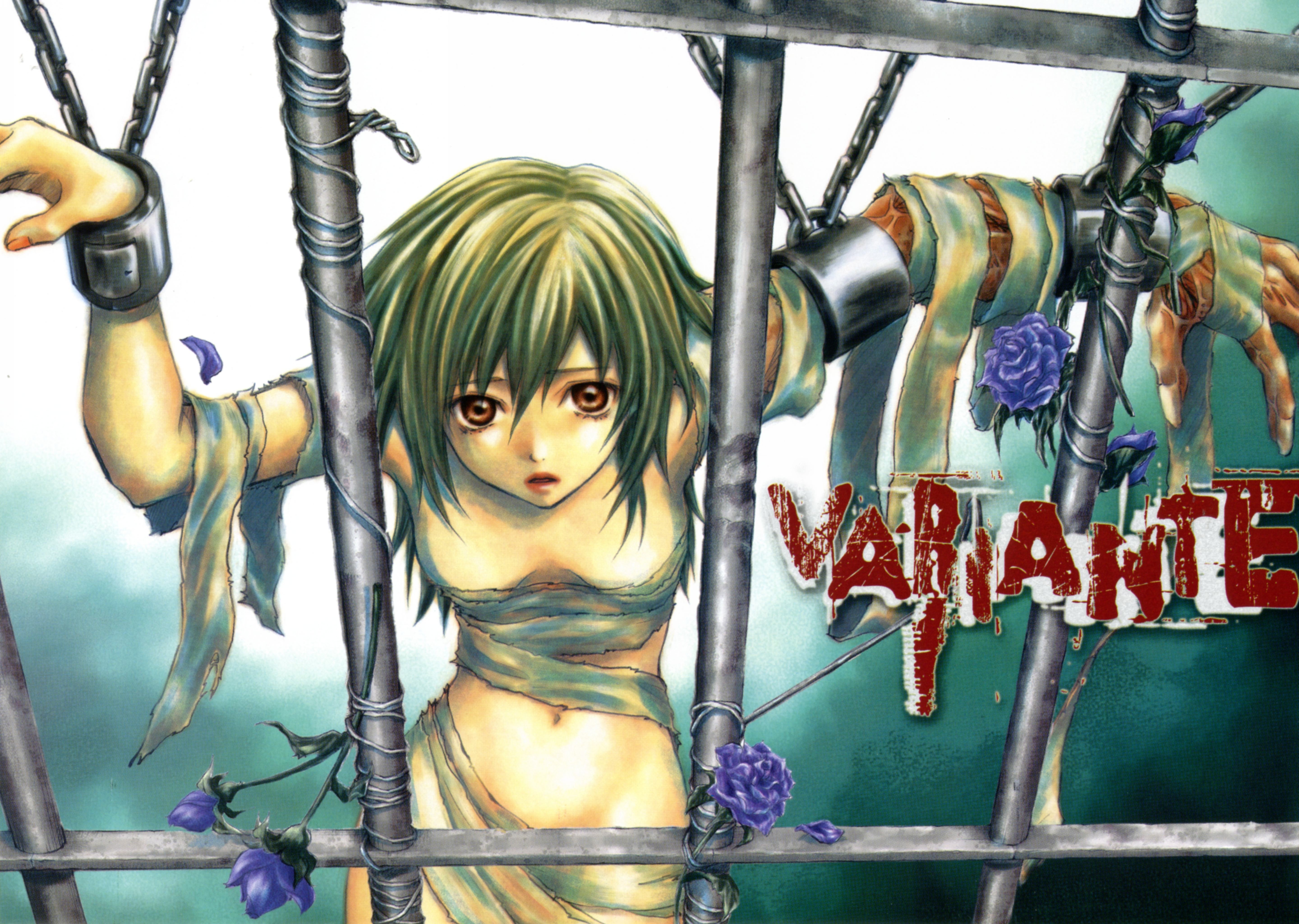 Flowers Manga chains anime girls brown eyes short hair bondage