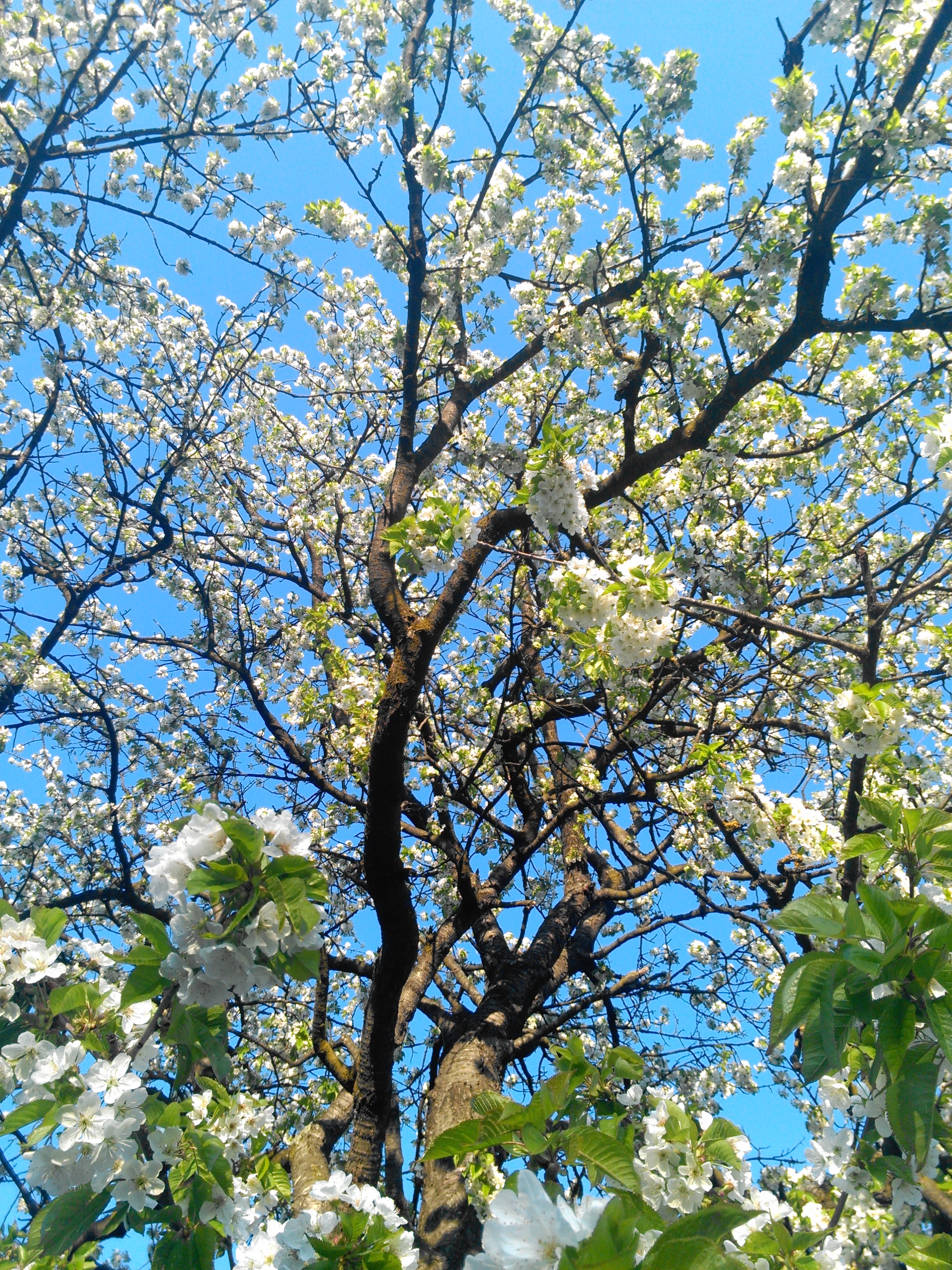 Flowers nature Trees blue white Green spring cherries white