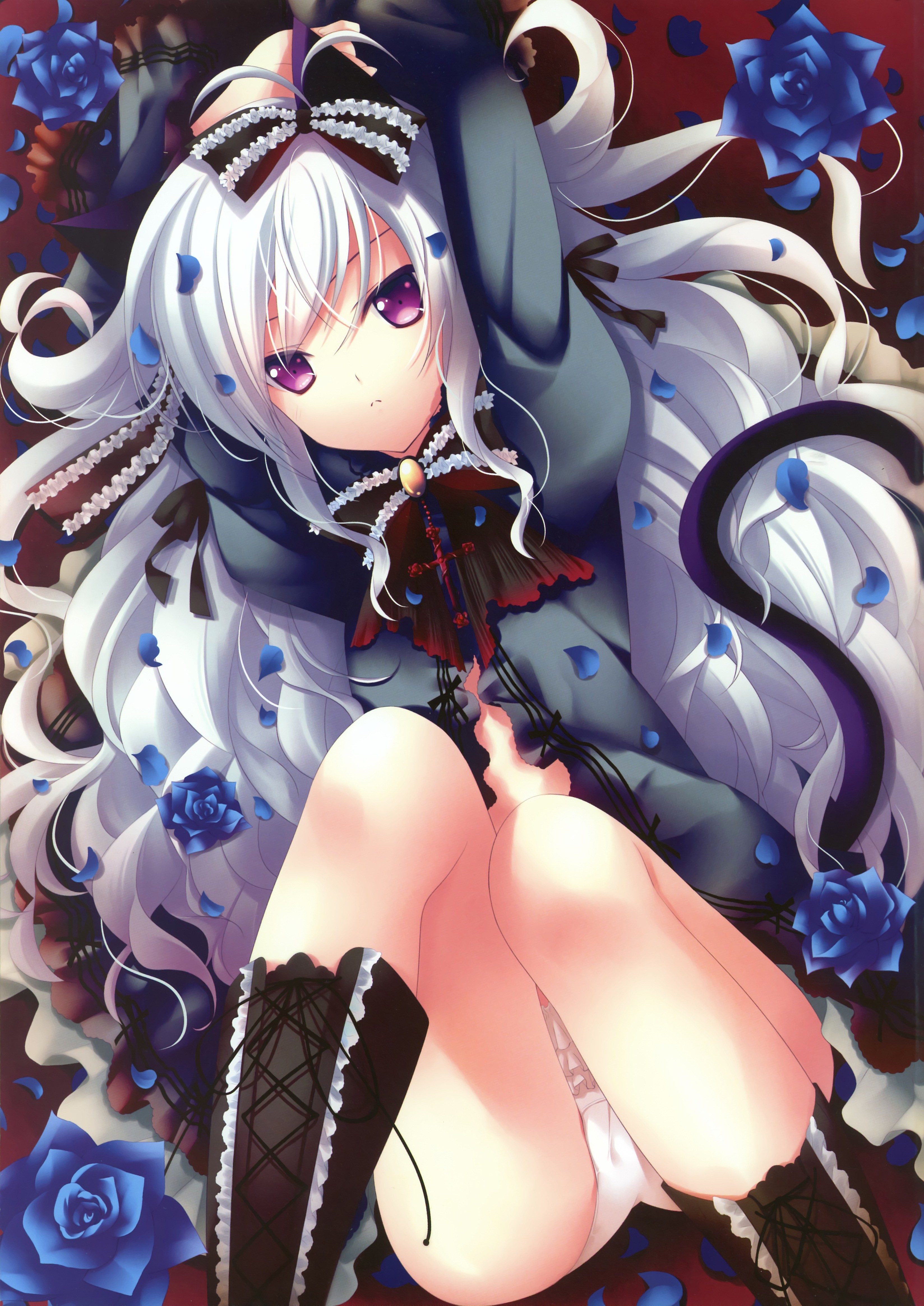 Flowers roses white hair long hair anime girls lingerie