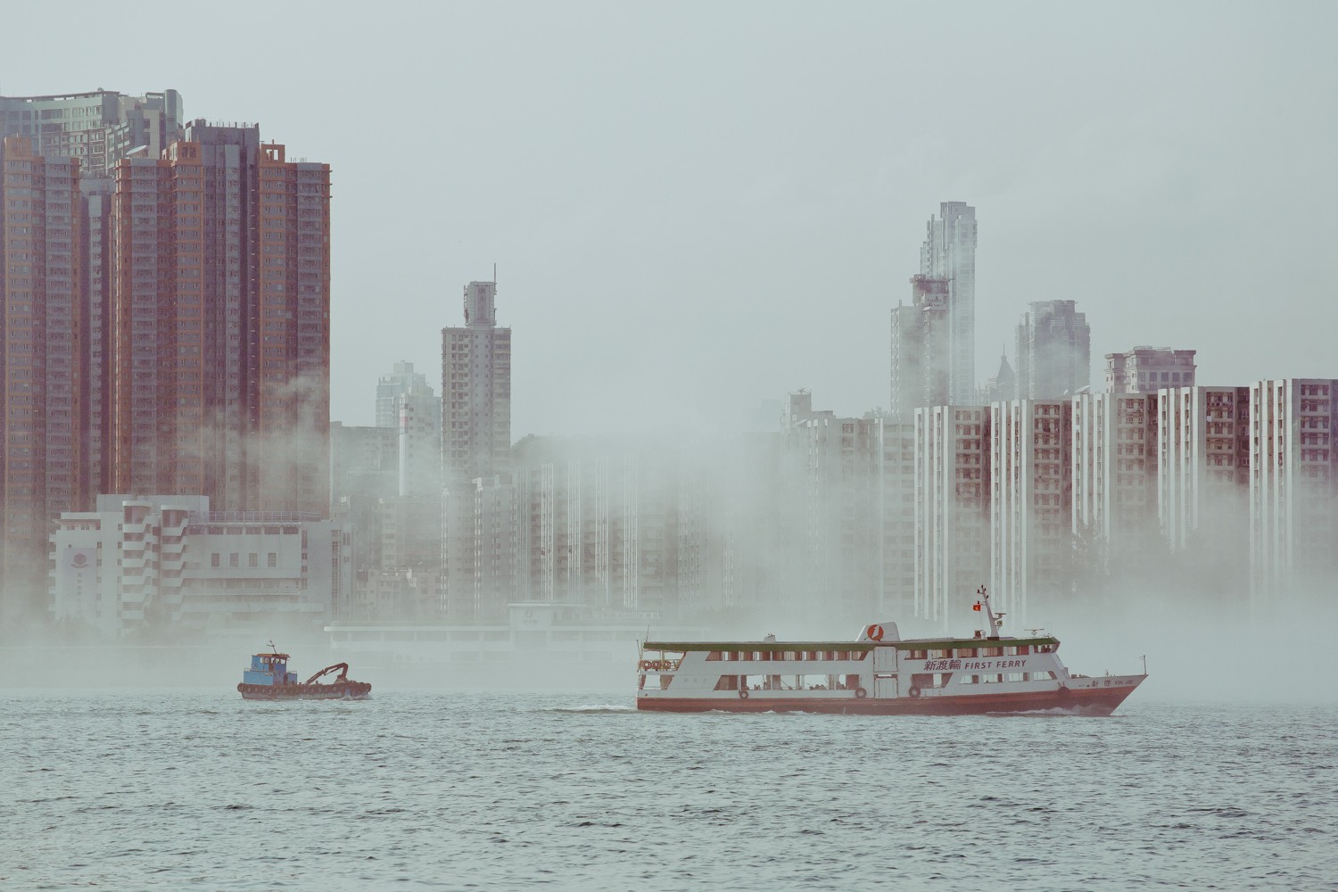 Fog Boats buildings cities rivers cityscapes hk5