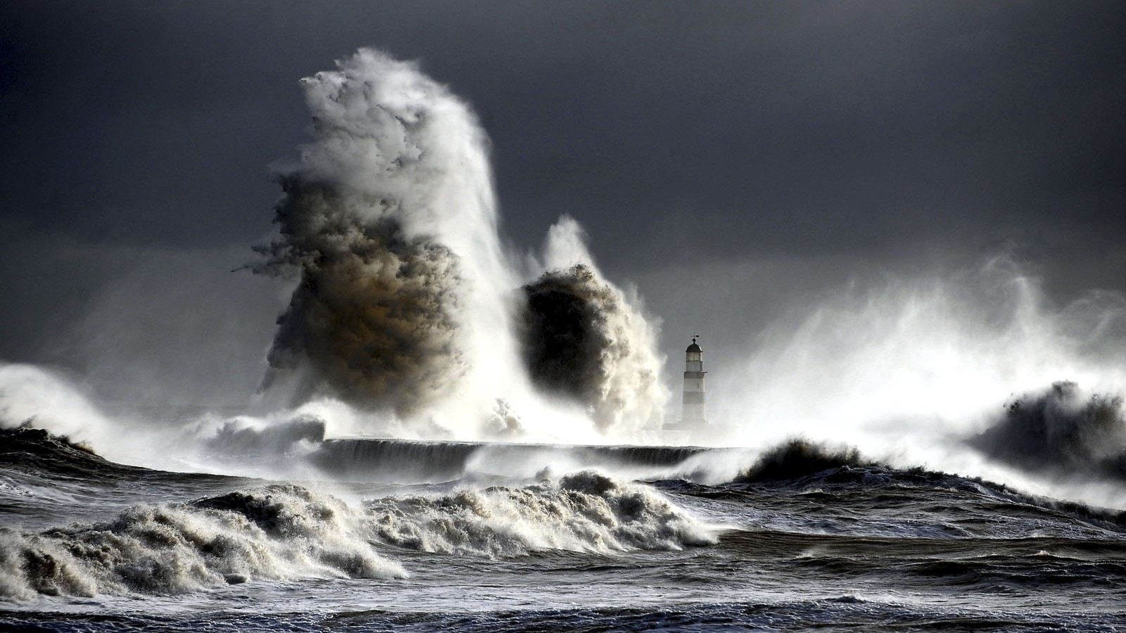 Gray ocean waves lighthouses harbours Seaham Harbour