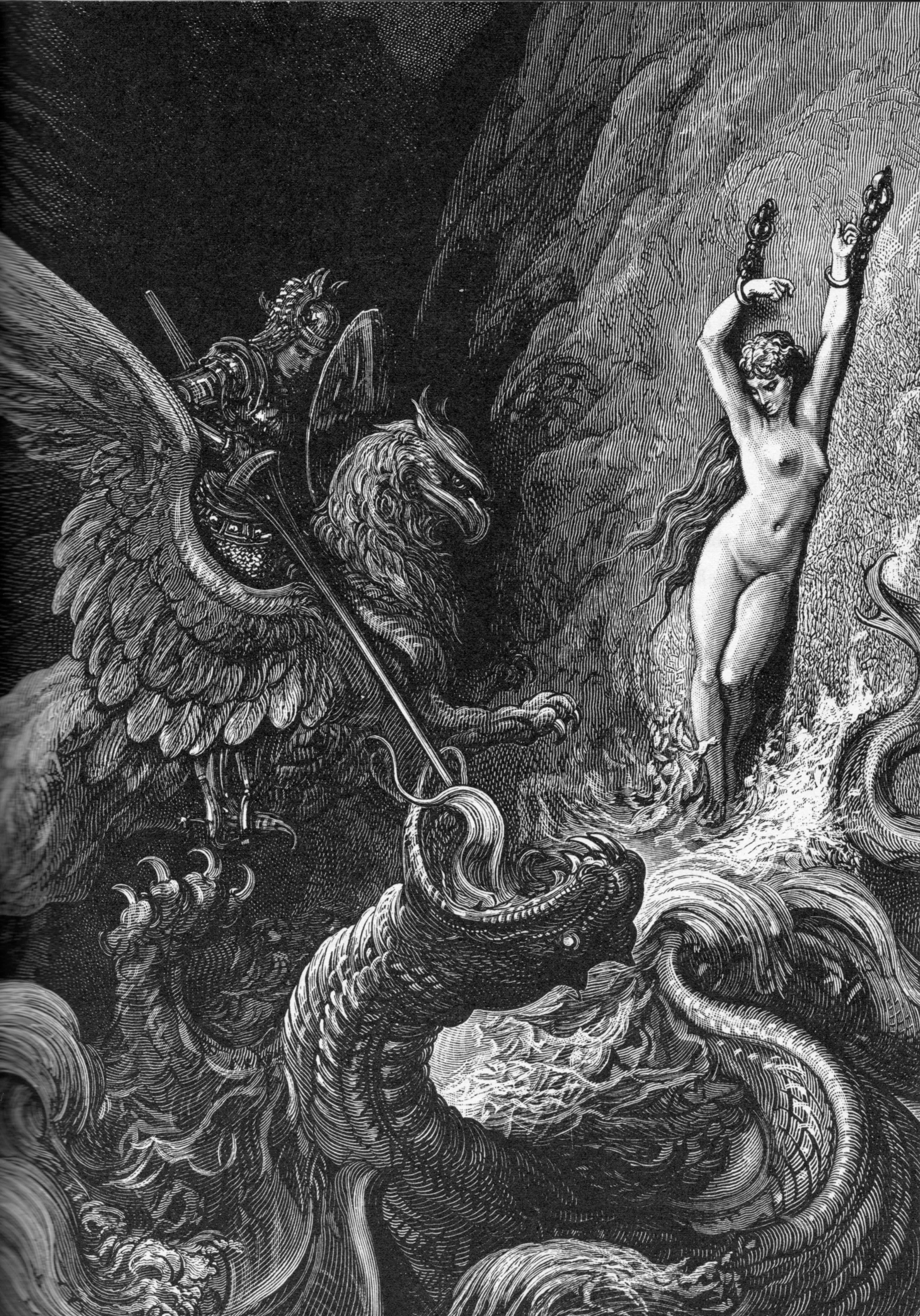 Grayscale Gustave Dore artwork