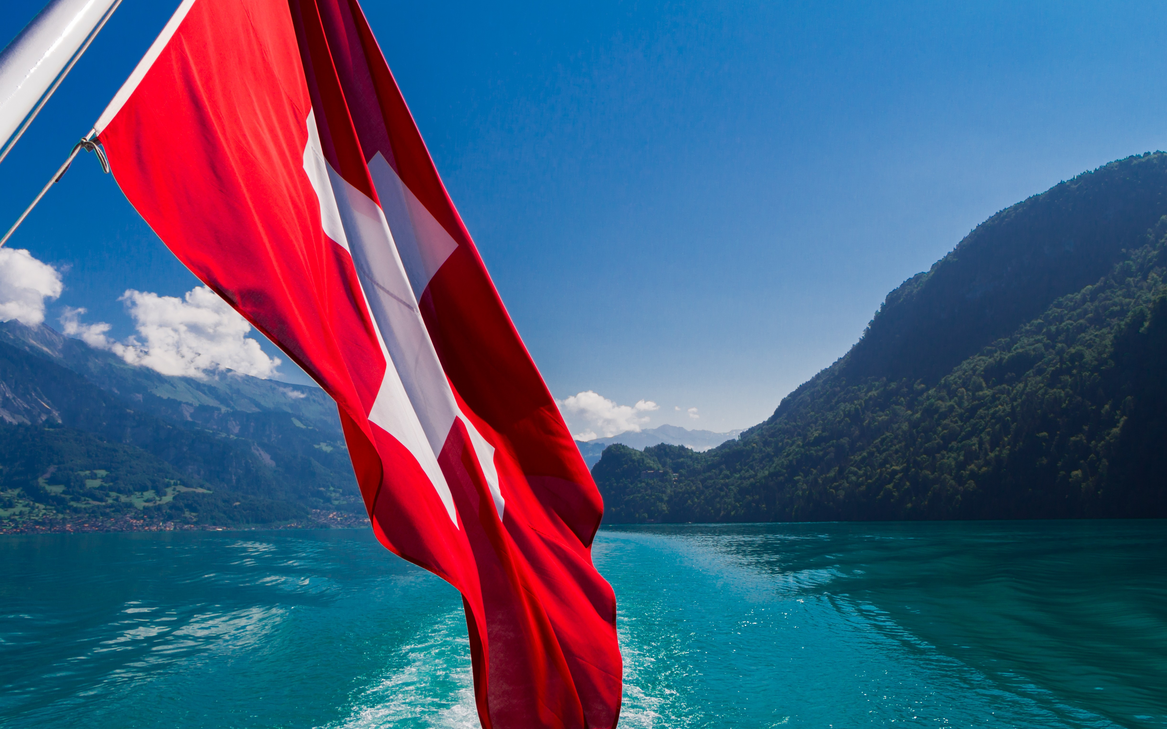 Lake Mountains ships switzerland Flags lakes skies brienz