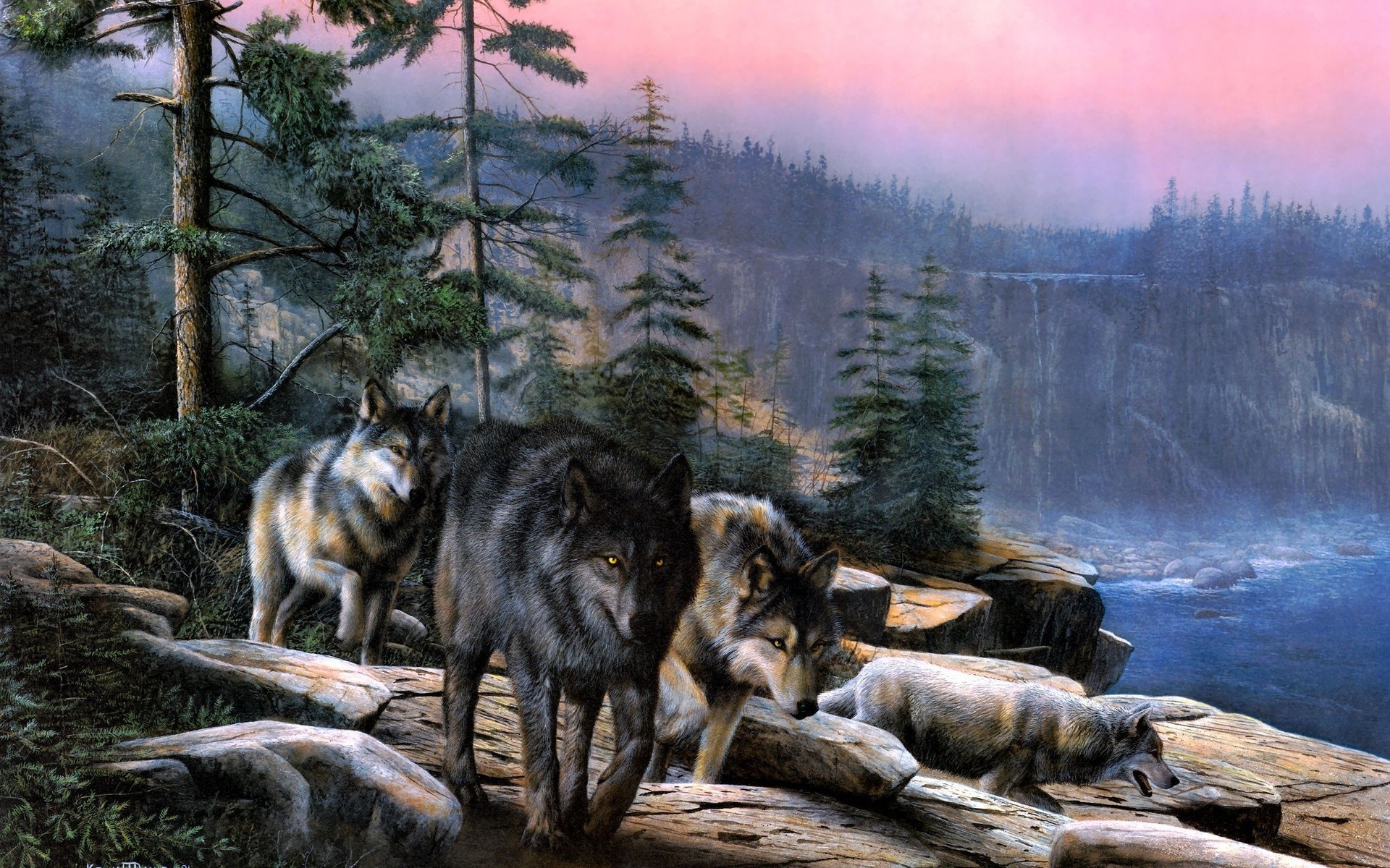Landscapes Animals Wolves wildlife kevin t daniel artwork