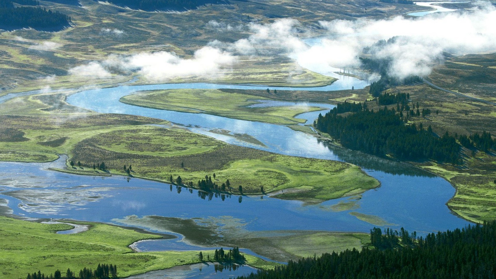 Landscapes national park rivers yellowstone valleys flood plain