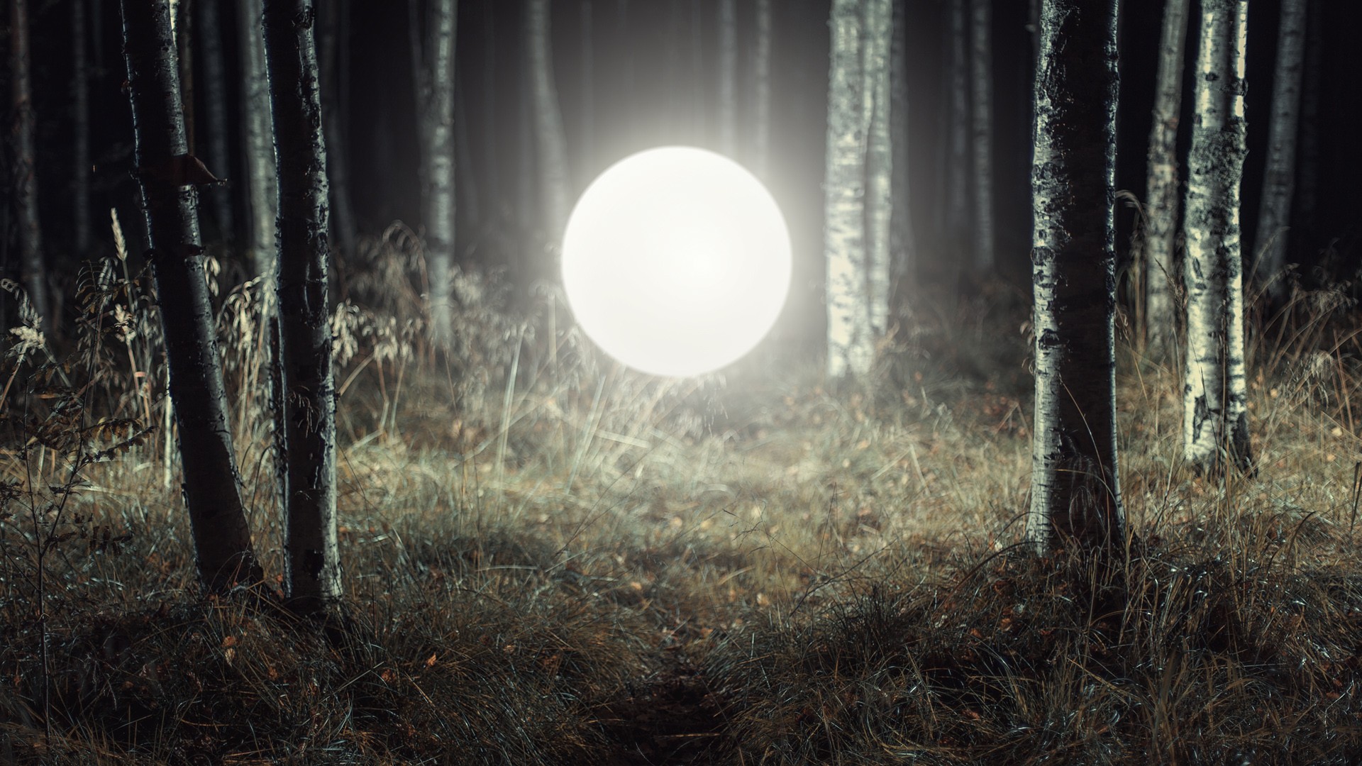 Landscapes nature Trees night moon light forests orb