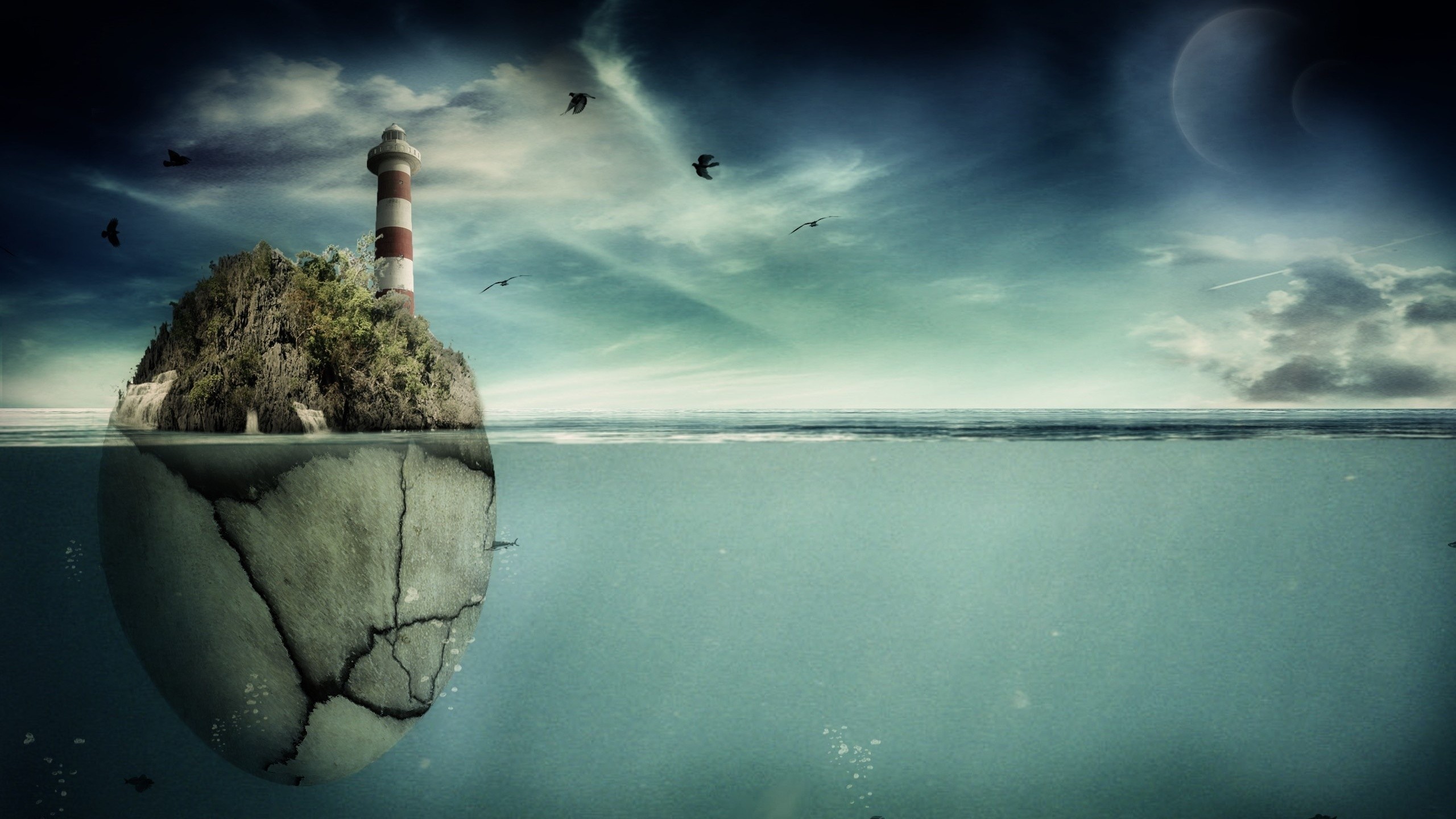 Landscapes Sea clouds moon Birds fish eggs Islands lighthouses