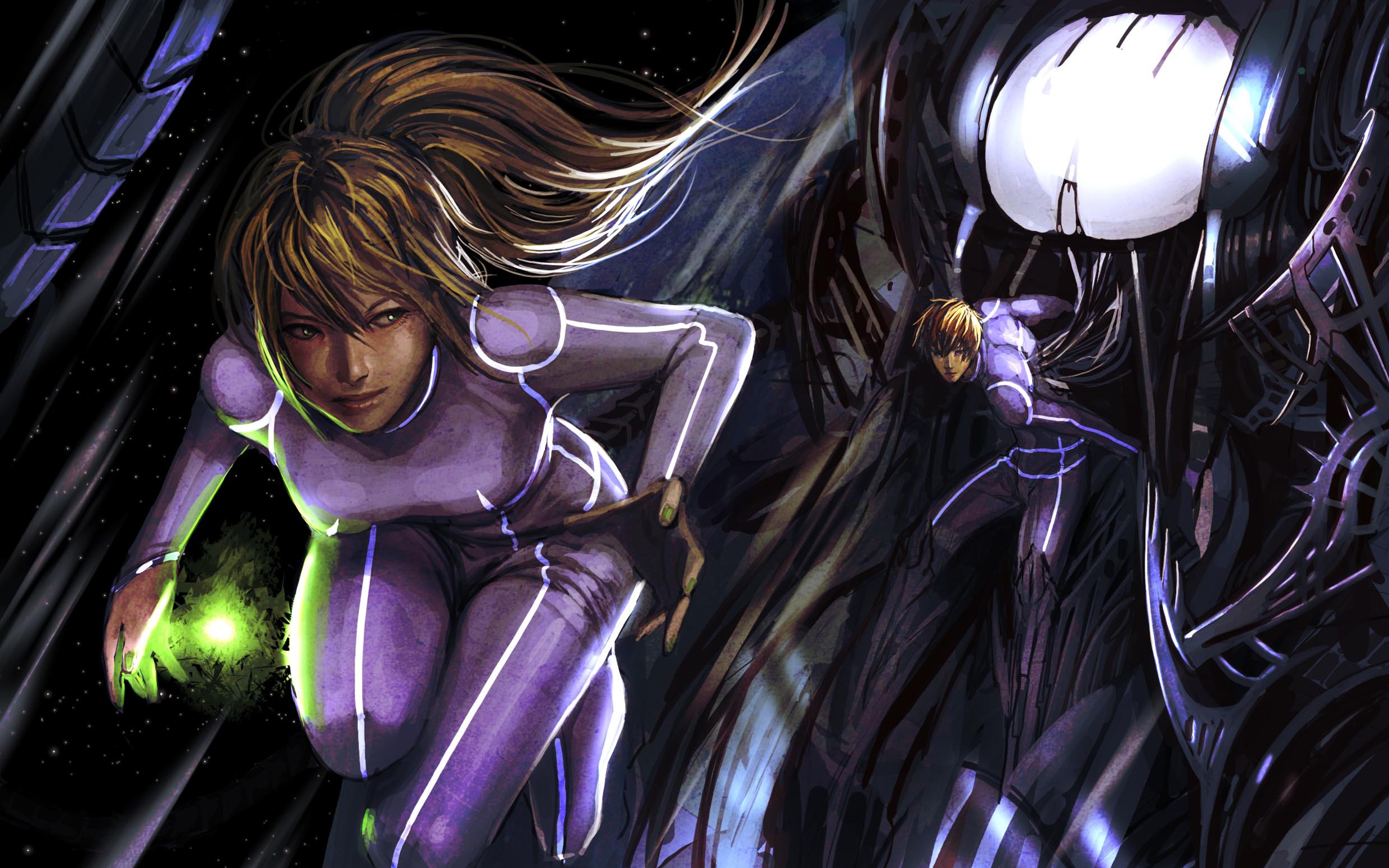 Men woman green eyes brunettes artwork fantasy art futuristic