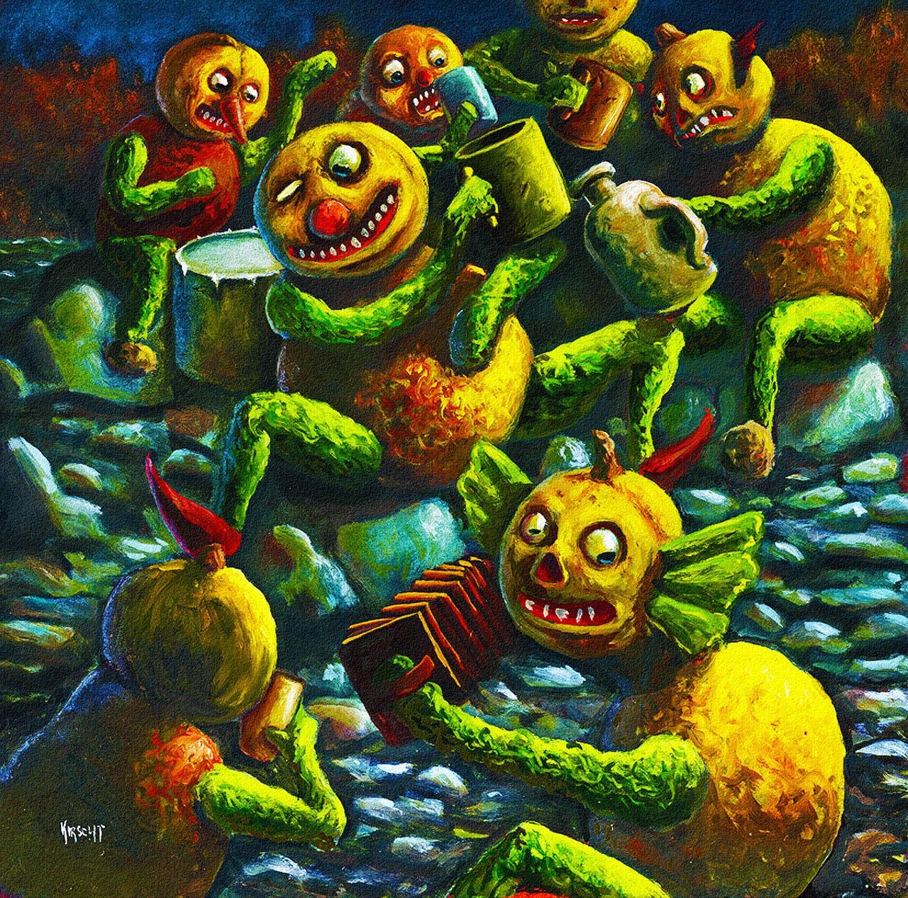 Monsters paintings Halloween pumpkins artwork traditional art