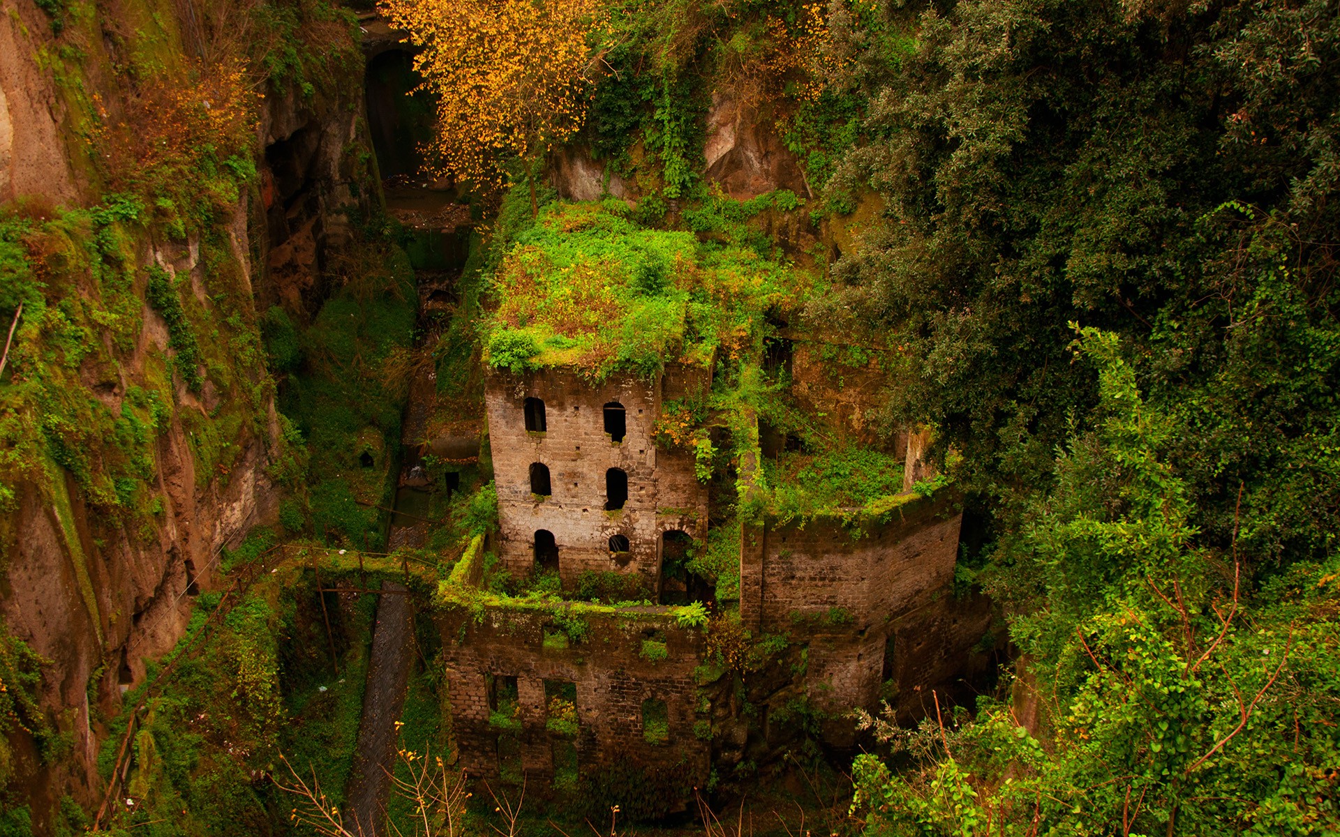 Moss ruins Italy Il Vallone dei Mulini