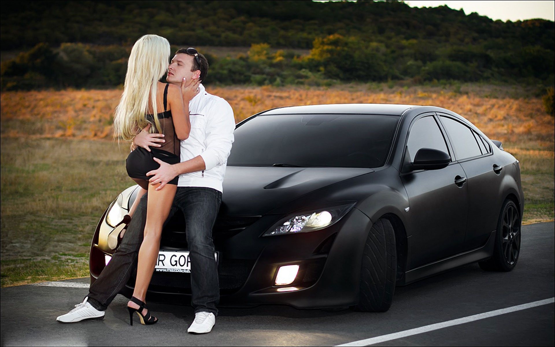 Nature Men woman cars blondes kissing mazda 5 black cars