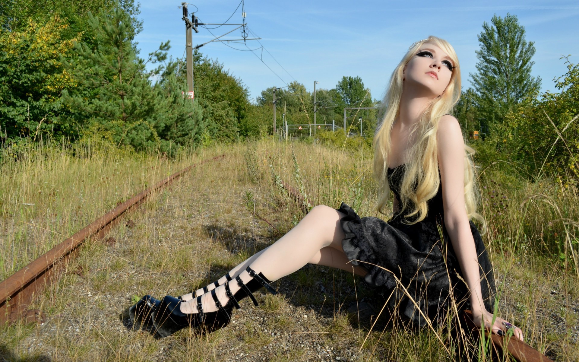 Nature Trees clouds Green woman blondes skies pale skin Valeria