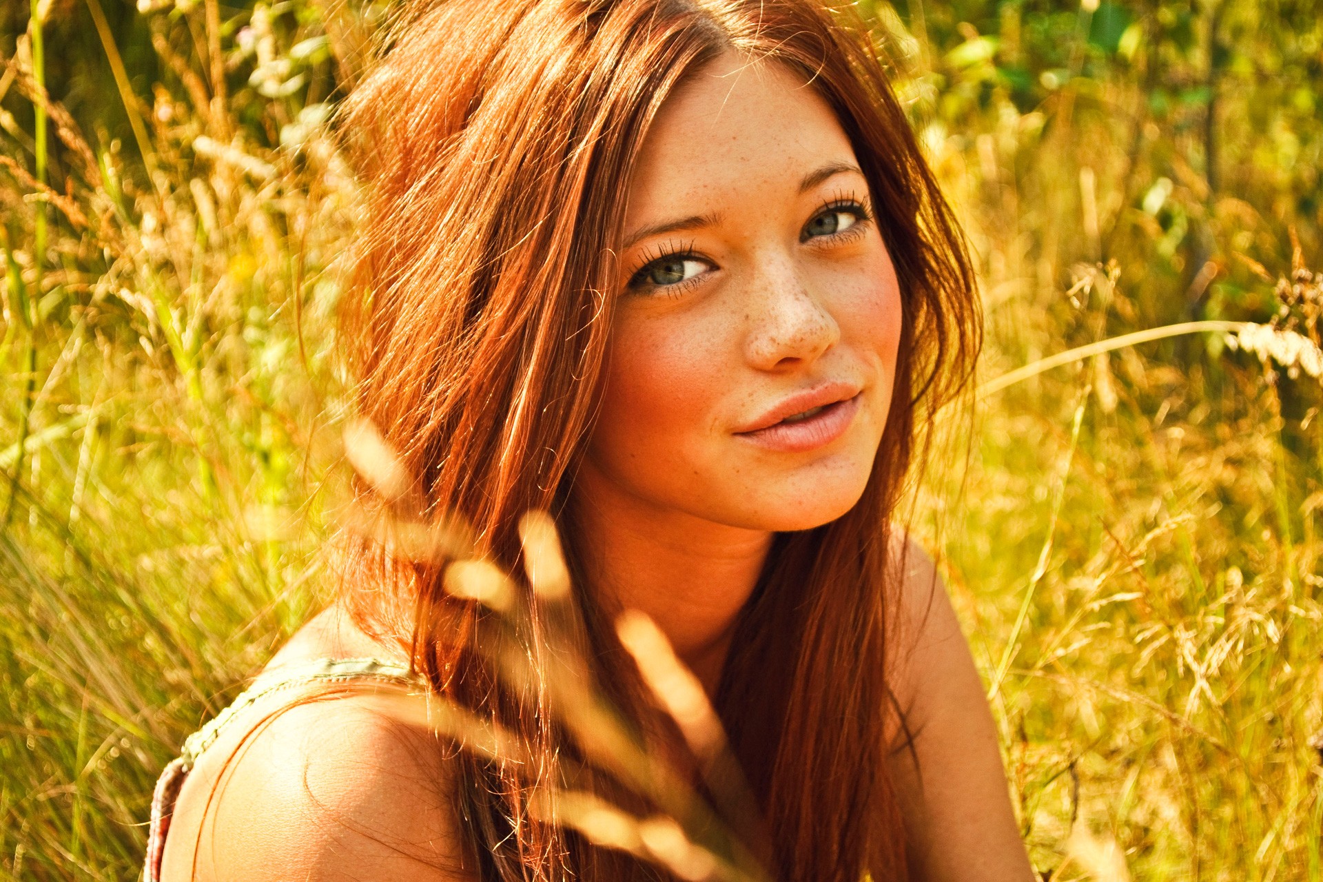 Woman faces outdoors freckles redheads Lindsay Hansen