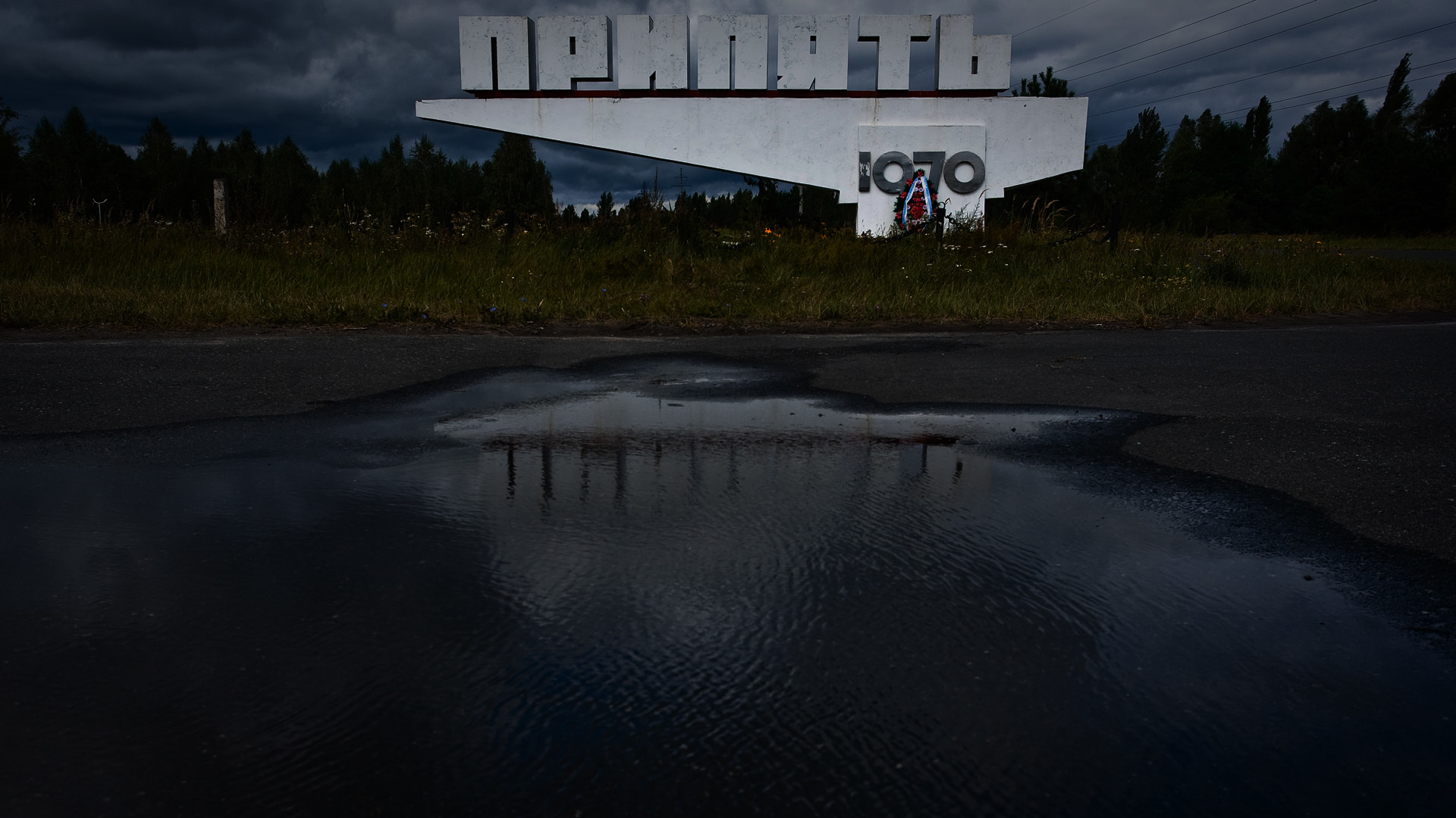 Pripyat sign Flowers dark