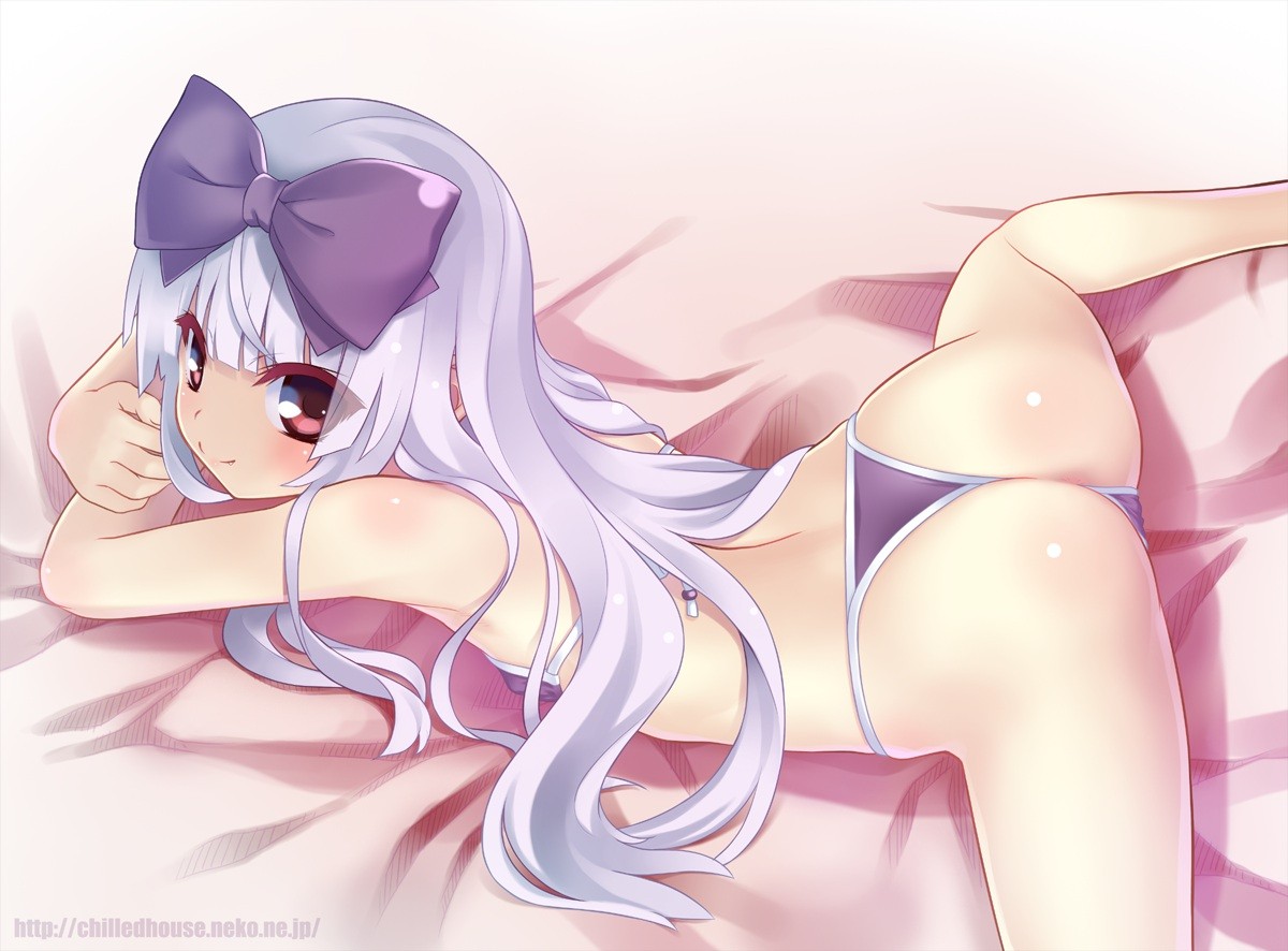 Red eyes blue hair long hair hair bow underwear lolicon 3.1