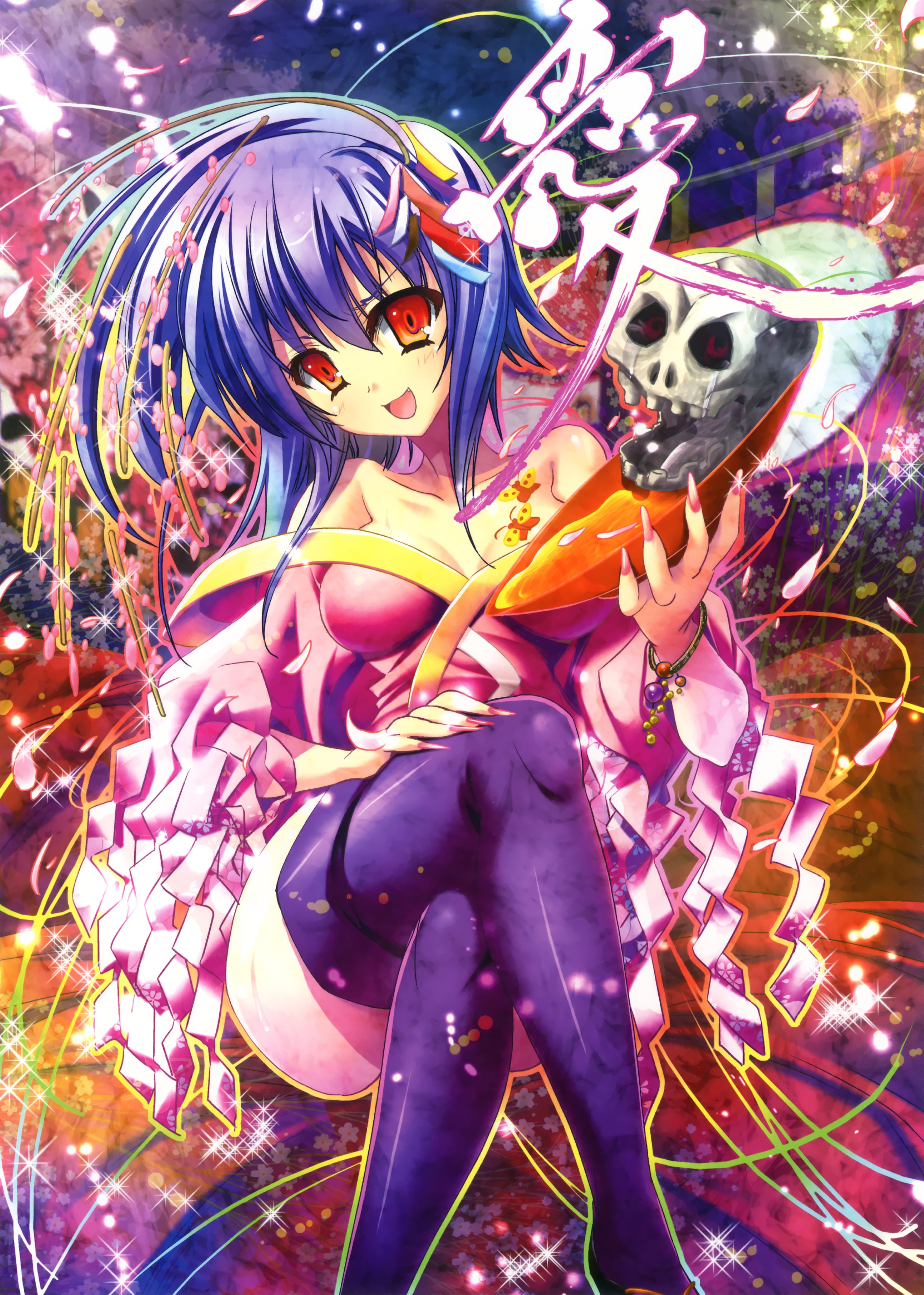 Red eyes skulls stockings blue hair anime girls Nankotsu
