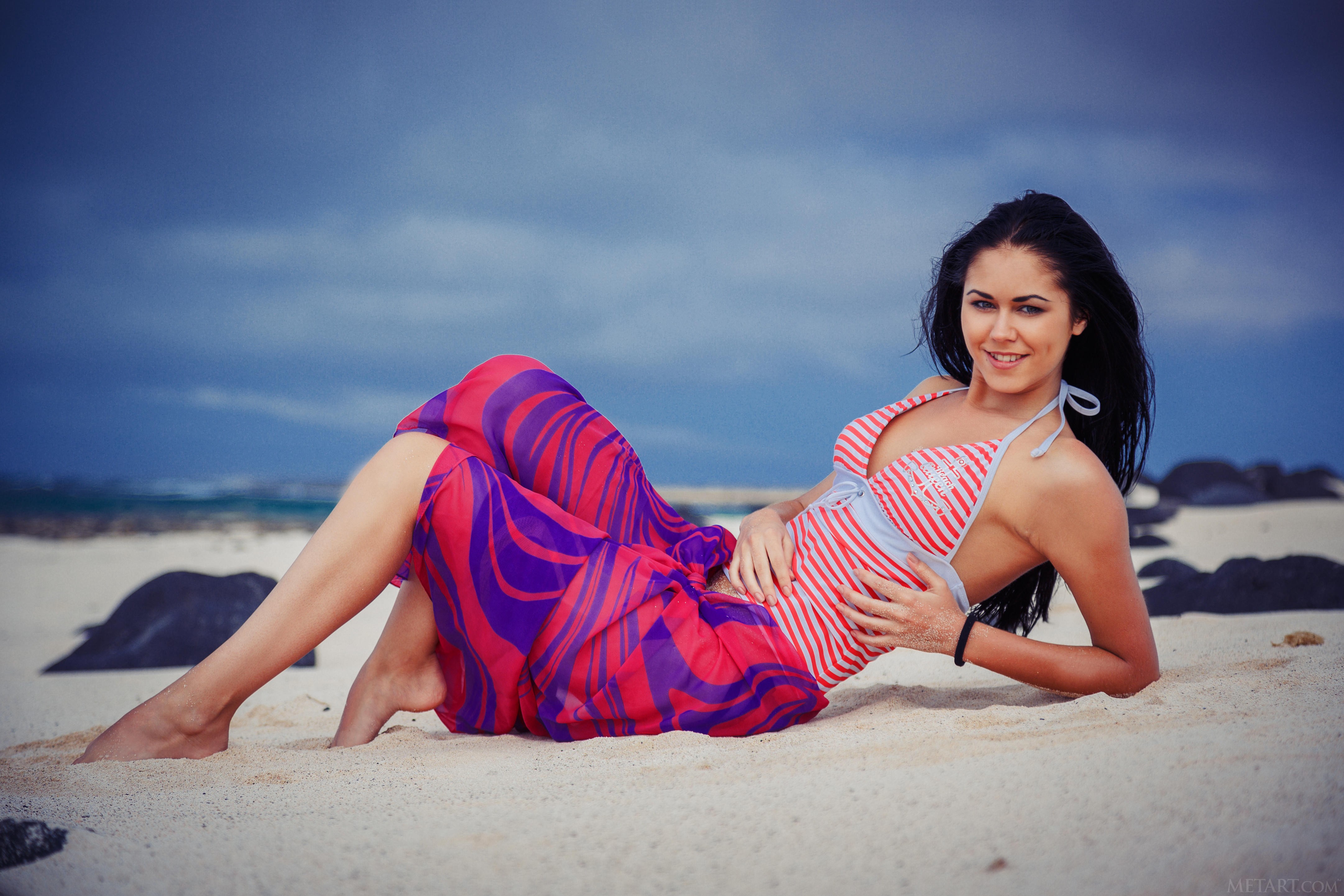 Sand woman Beaches daylight models photo shoot black hair nude