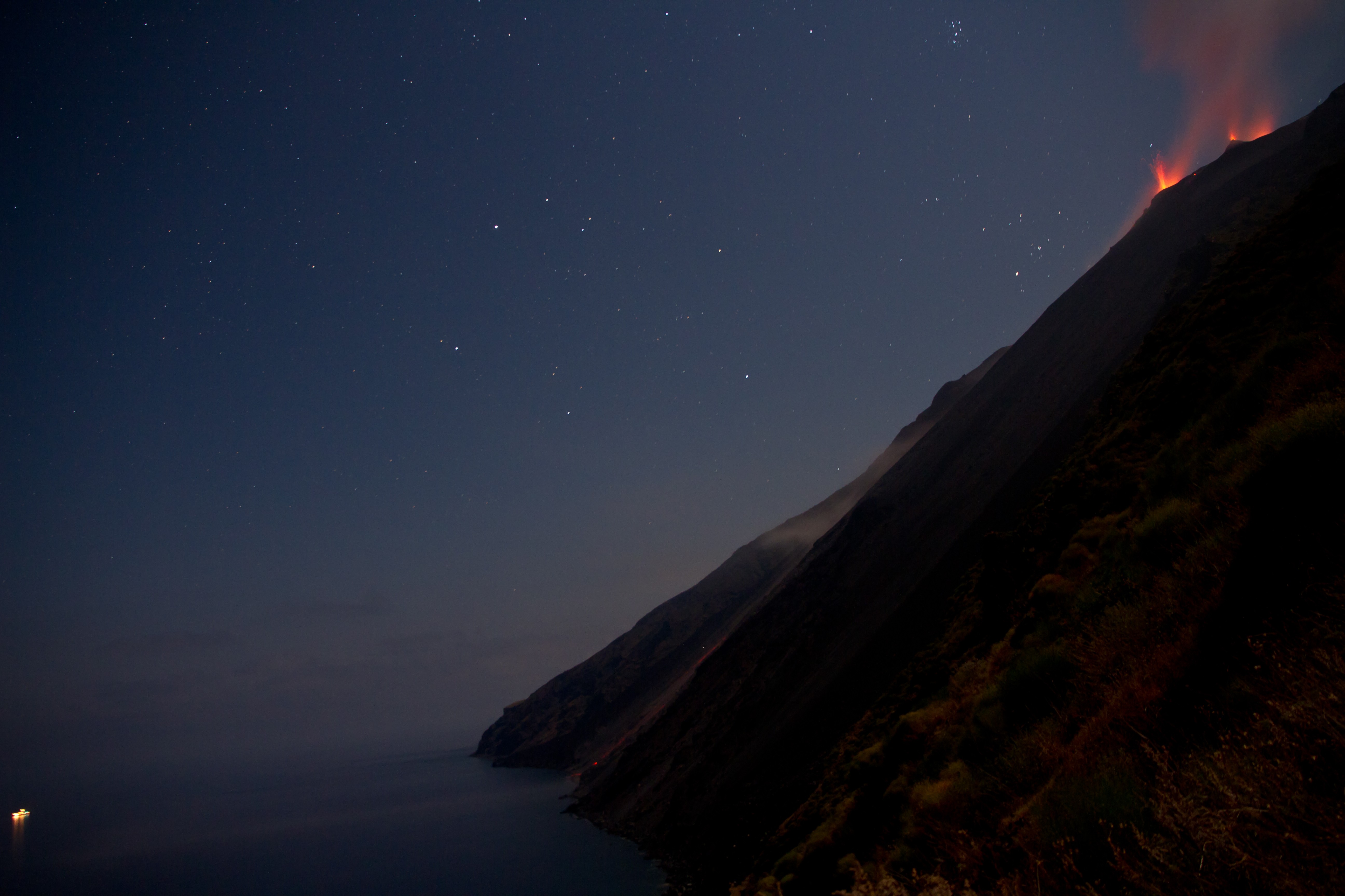 Sea night Stars Boats eruption Volcanoes Italy italia Aeolian