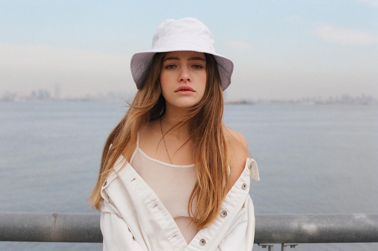 Sea water ocean woman hats urban shoulders long hair green eyes
