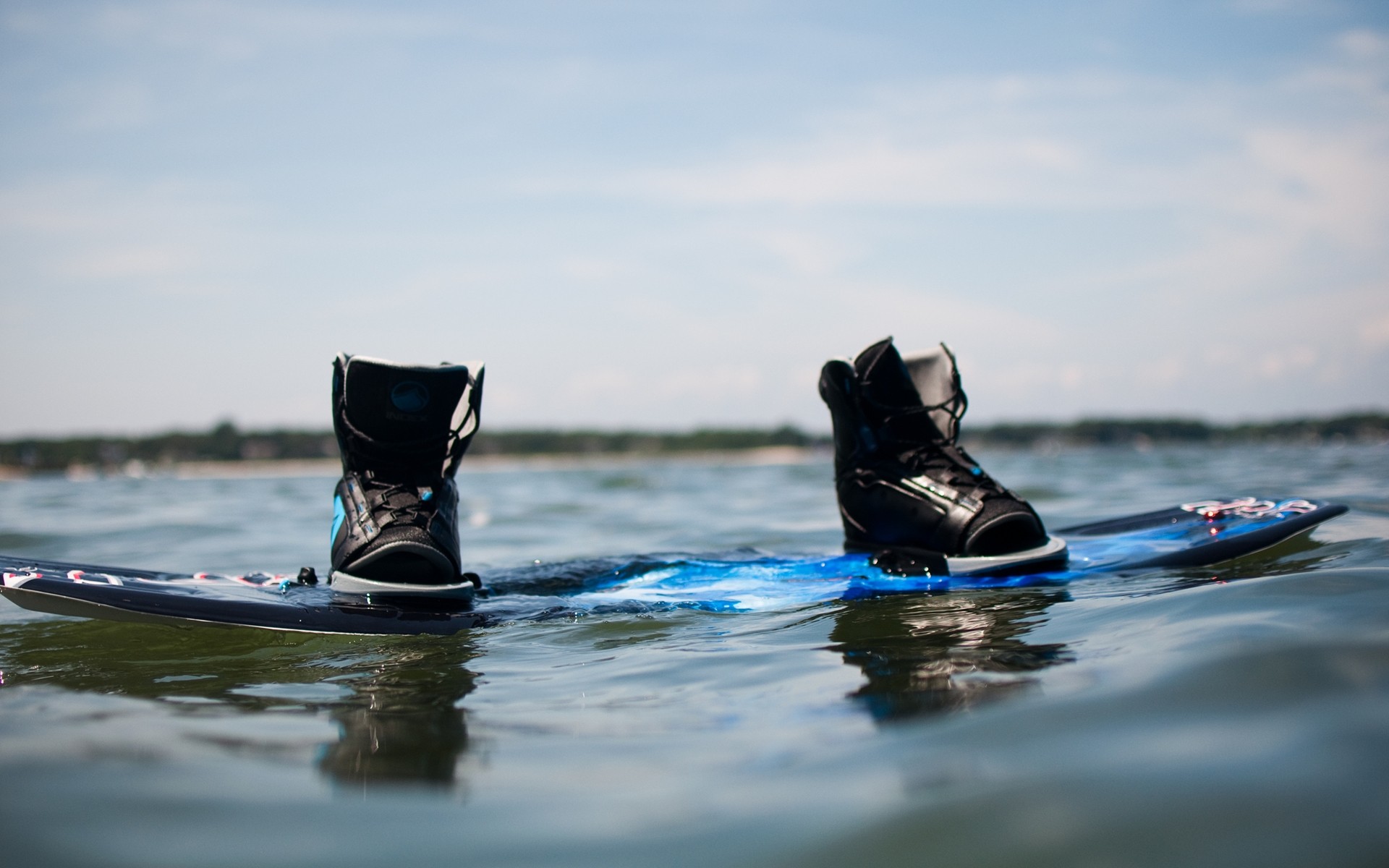 Sea water Shoes reflections blue skies wakeboard