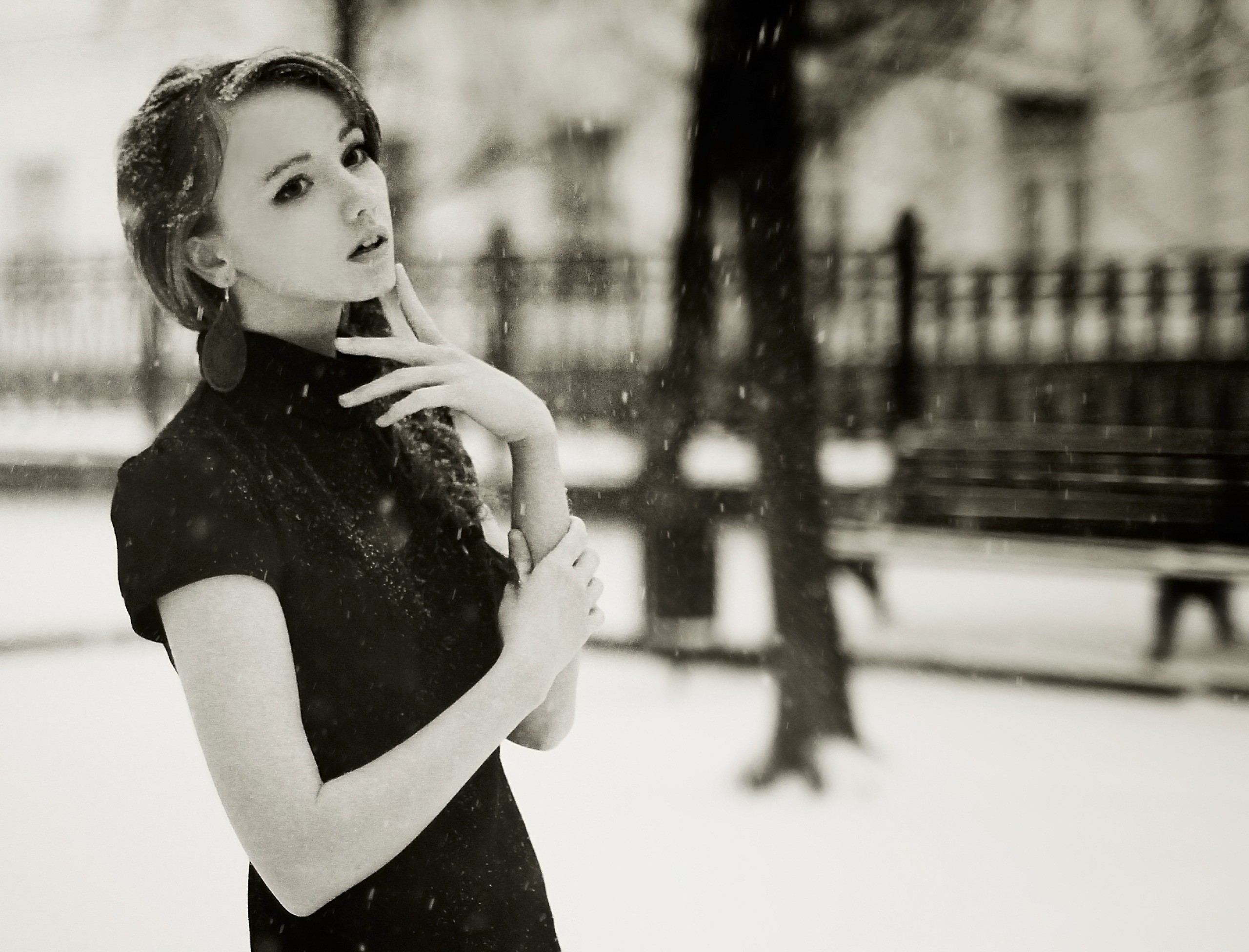 Snow woman monochrome outdoors blondes models Olesya Kharitonova