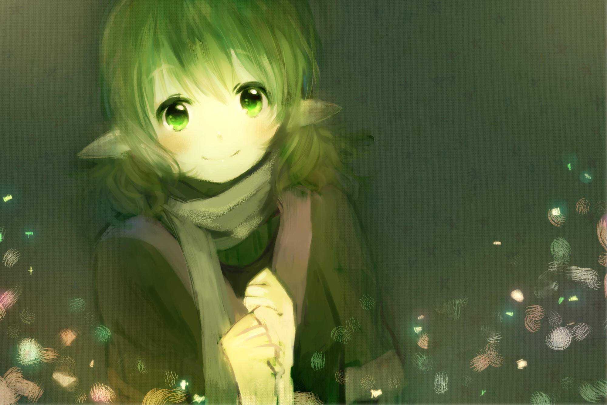 Stars scarfs anime girls green eyes short hair green hair