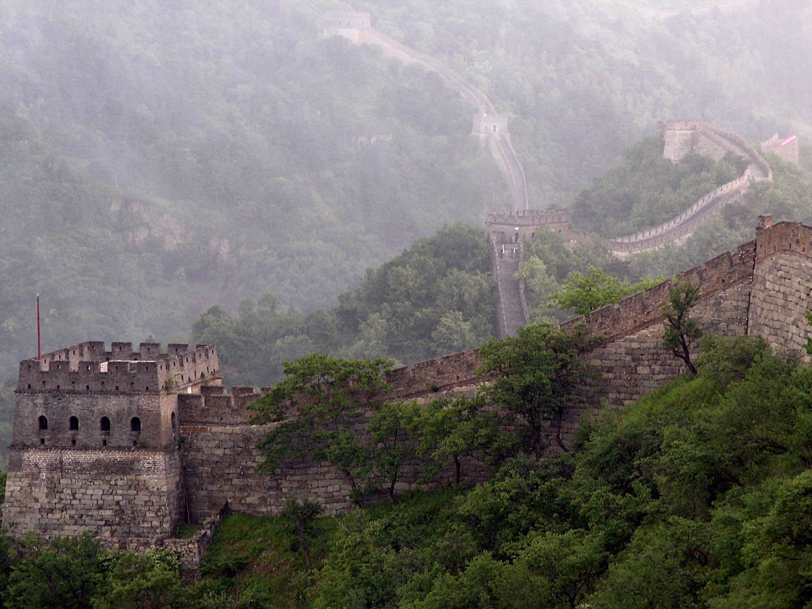 Stones fog Trees Mountains Great Wall of China Castles mist the