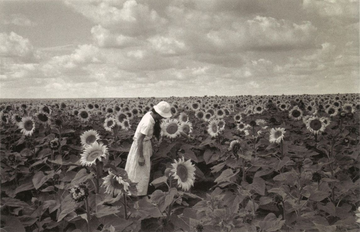 Sunflowers woman vintage monochrome fields old photography