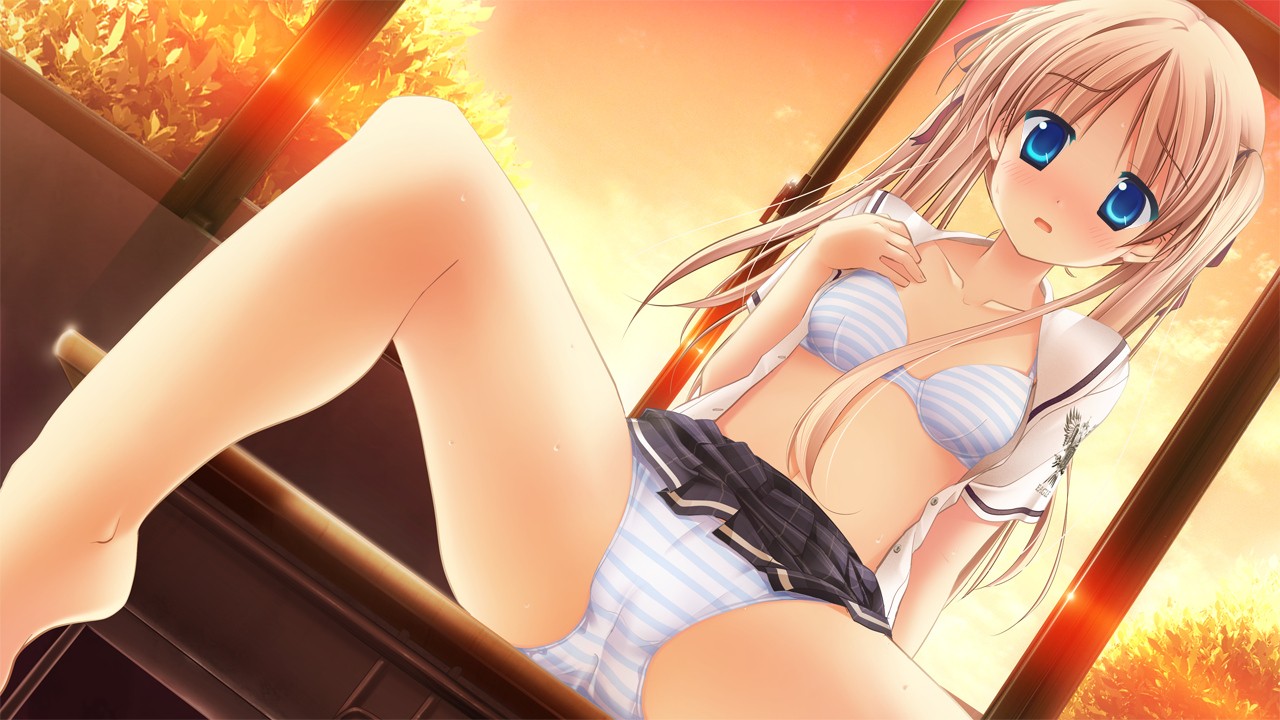 Sunset Anime blondes blush anime girls blue eyes tsukasa bra