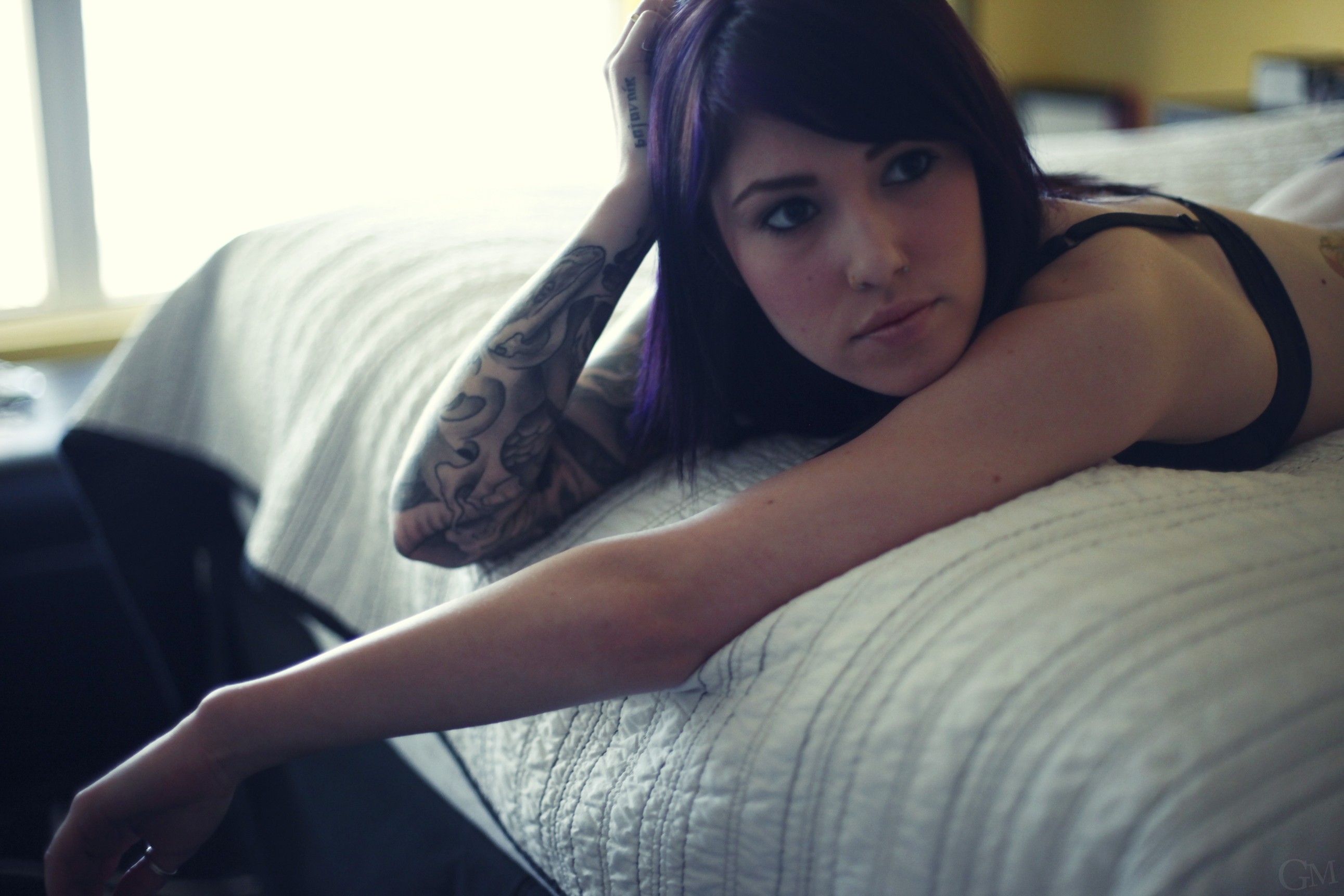 Tattoos long hair brunettes models bra Candace Celine