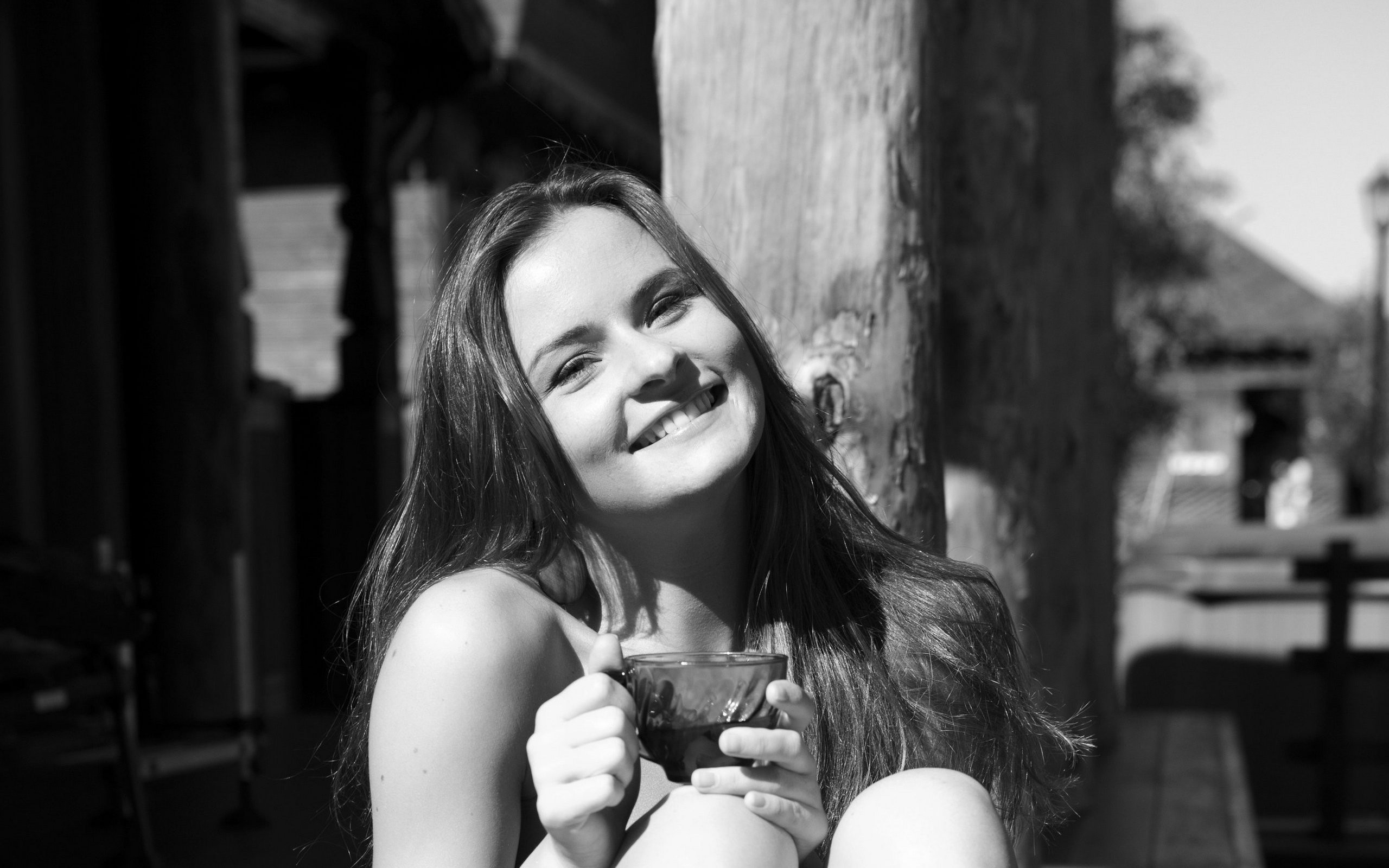 Tea woman blondes smiling models nude grayscale Met-Art