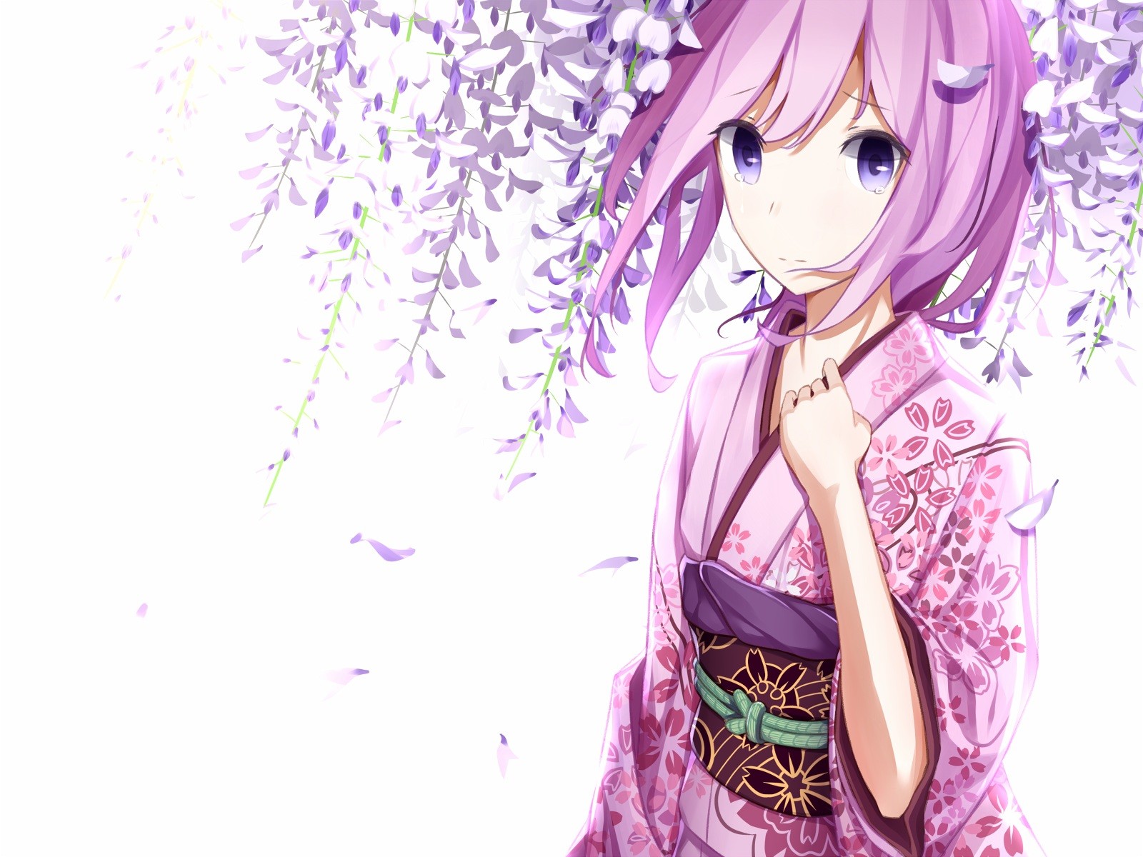 Tears anime girls vocaloid megurine luka cherry blossoms
