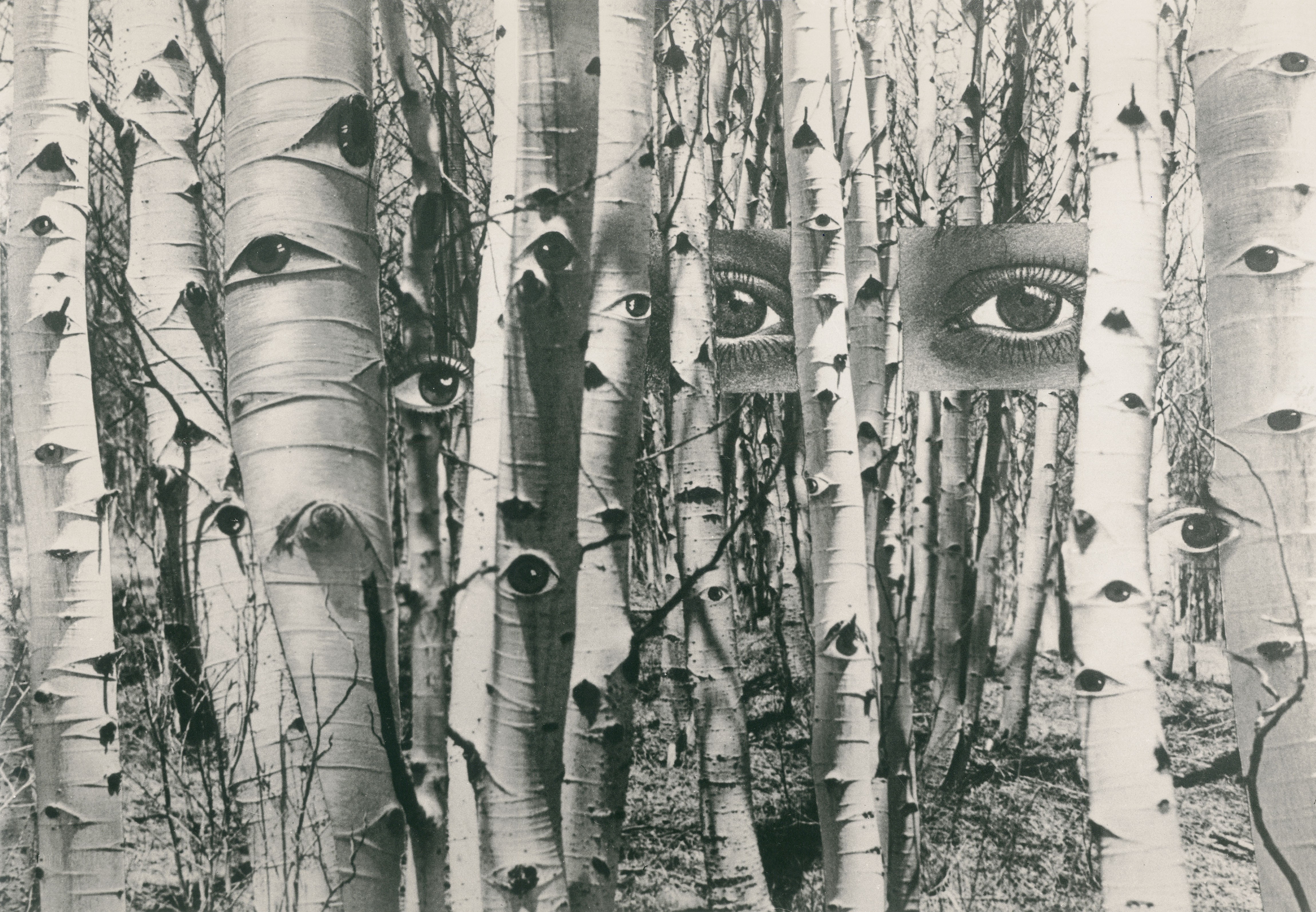 Trees collage surrealism eyes forests grayscale Herbert Bayer