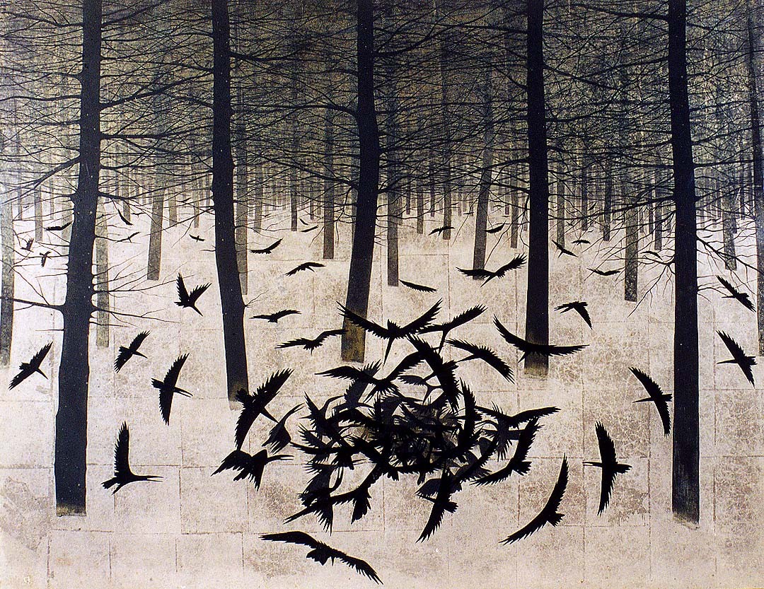 Trees Ravens forests artwork Matazo Kayama